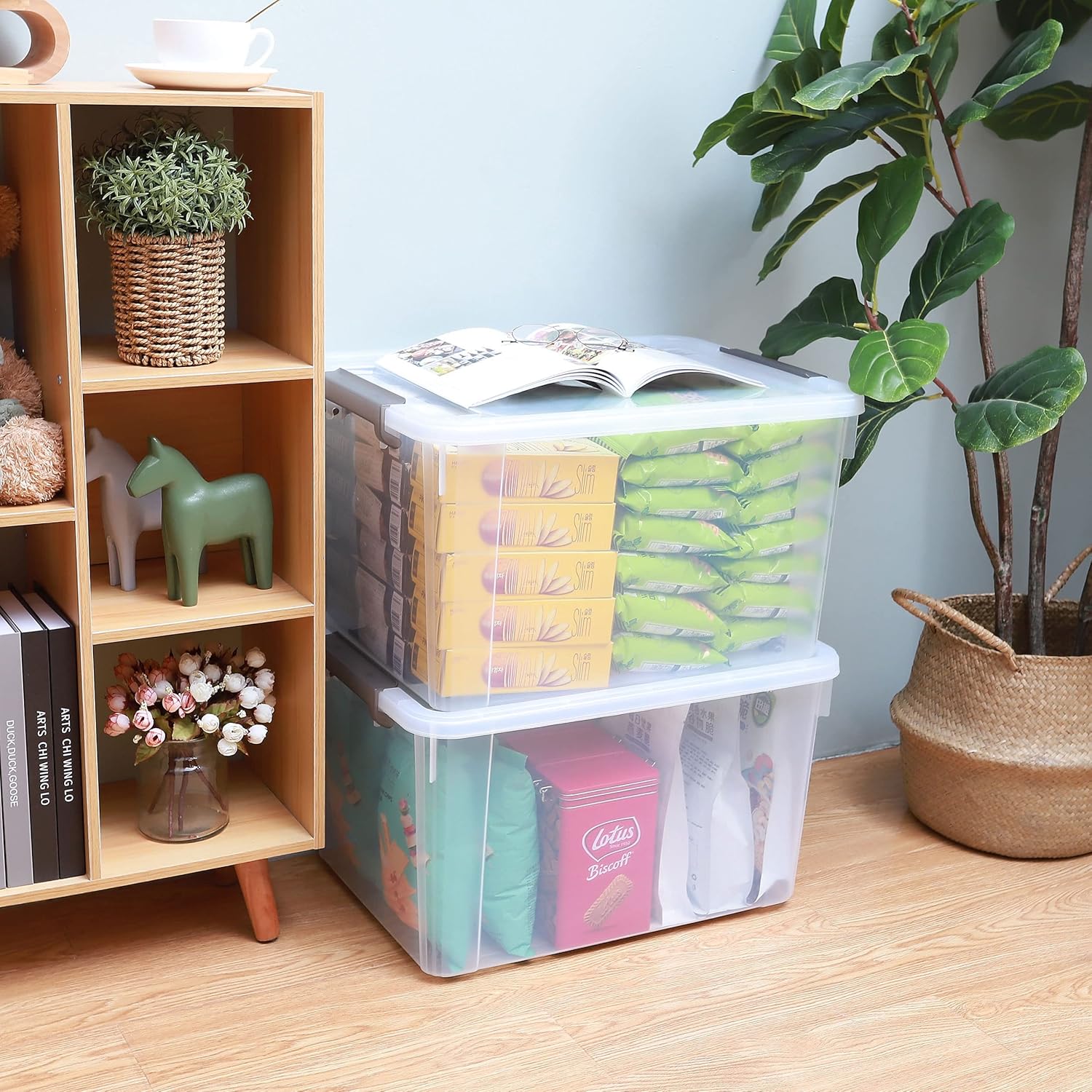 Citylife 58.1 QT Plastic Storage Bins with Latching Lids Stackable Storage Containers for Organizing Large Clear Storage Box for Garage, Closet, Kitchen, 8 Packs