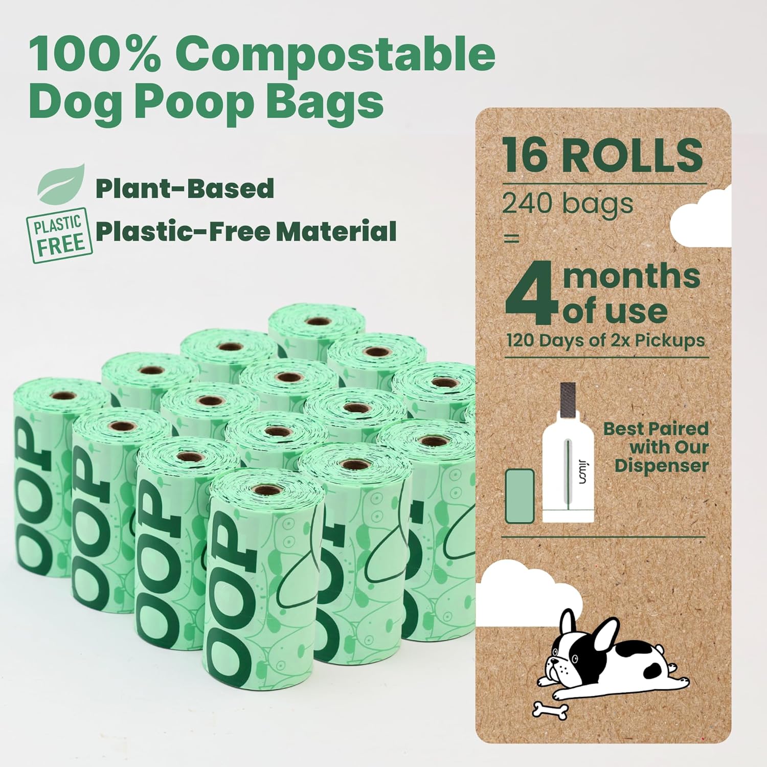 JIWON 100% Certified Home Compostable Dog Poop Bags, 240 Count (16 Rolls), 9"x13", OK Compost & Seedling, Thick & Leakproof, Plant Based Compostable Waste Bags, Unscented