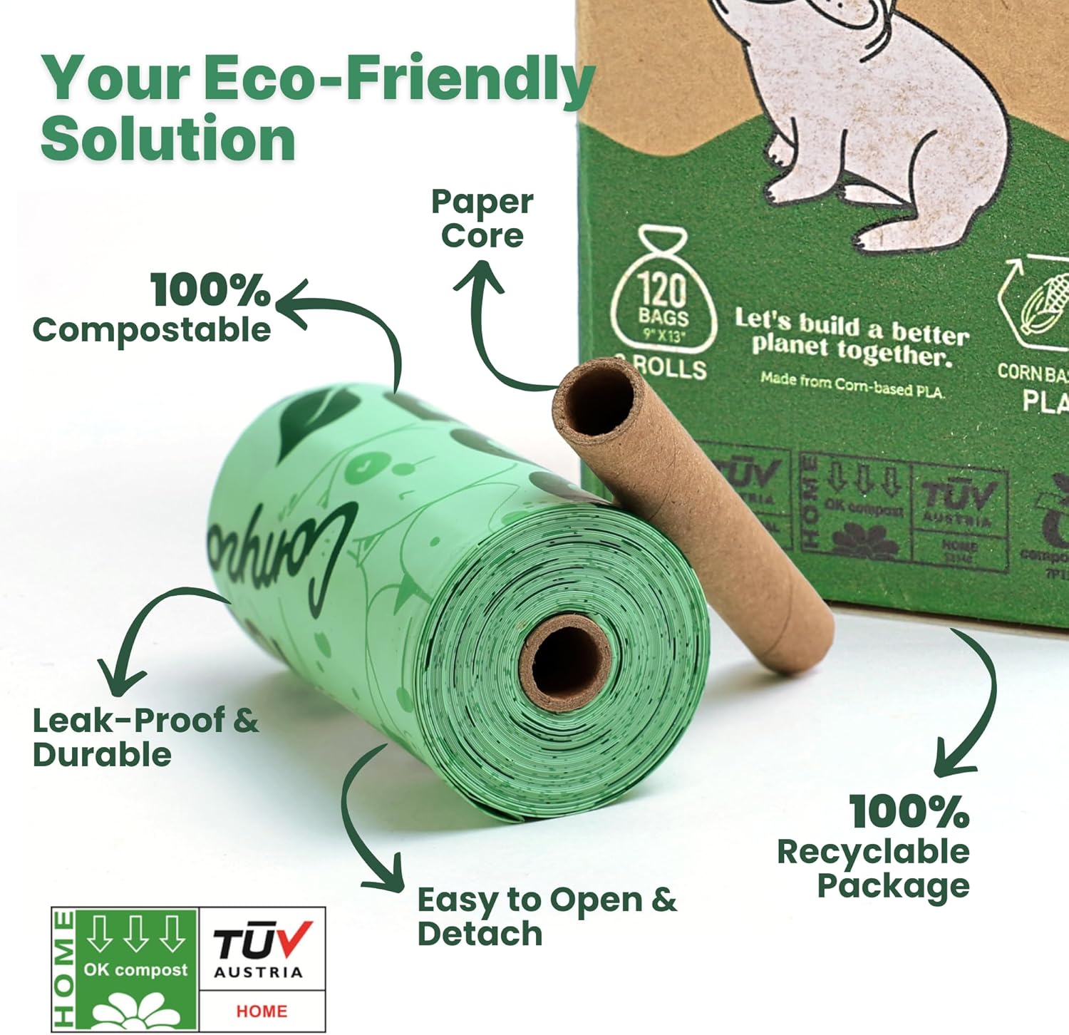 • A Must for “Green” Pet Owners: If you are a conscious pet owner looking for green solutions for pet waste disposal, these dog waste bags are the way to go! Plastic-free, durable and compostable, these dog bags for poop biodegradable minimize plastic waste while helping you to safely dispose of pet waste!