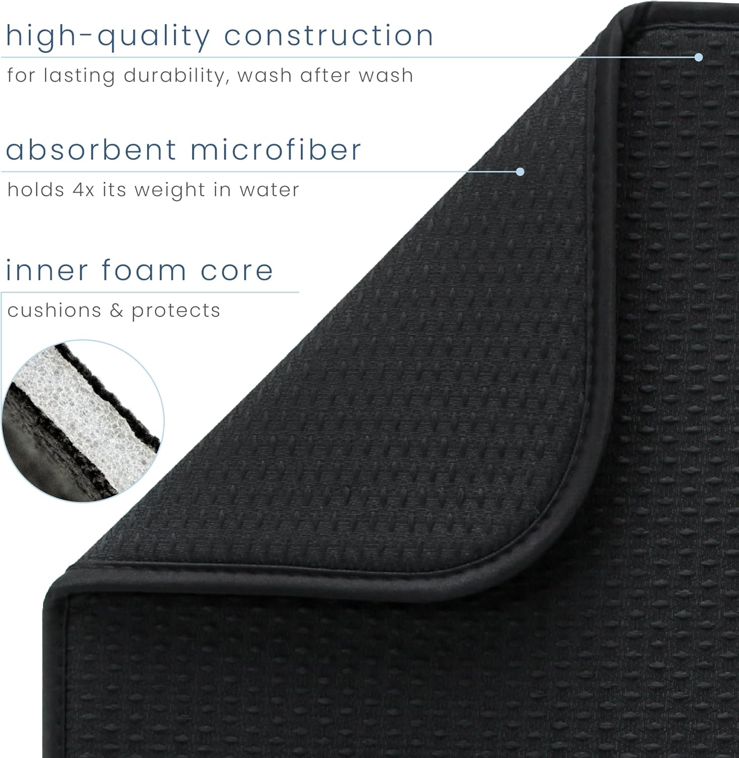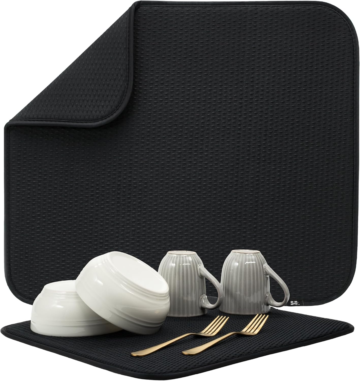 S&T INC. Dish Drying Mat, 16” x 18”, Absorbent Microfiber Kitchen Counter Mat, Drying Pad for Dishes, Utensils, Pots and Pans, Large, Diamond Texture, Black