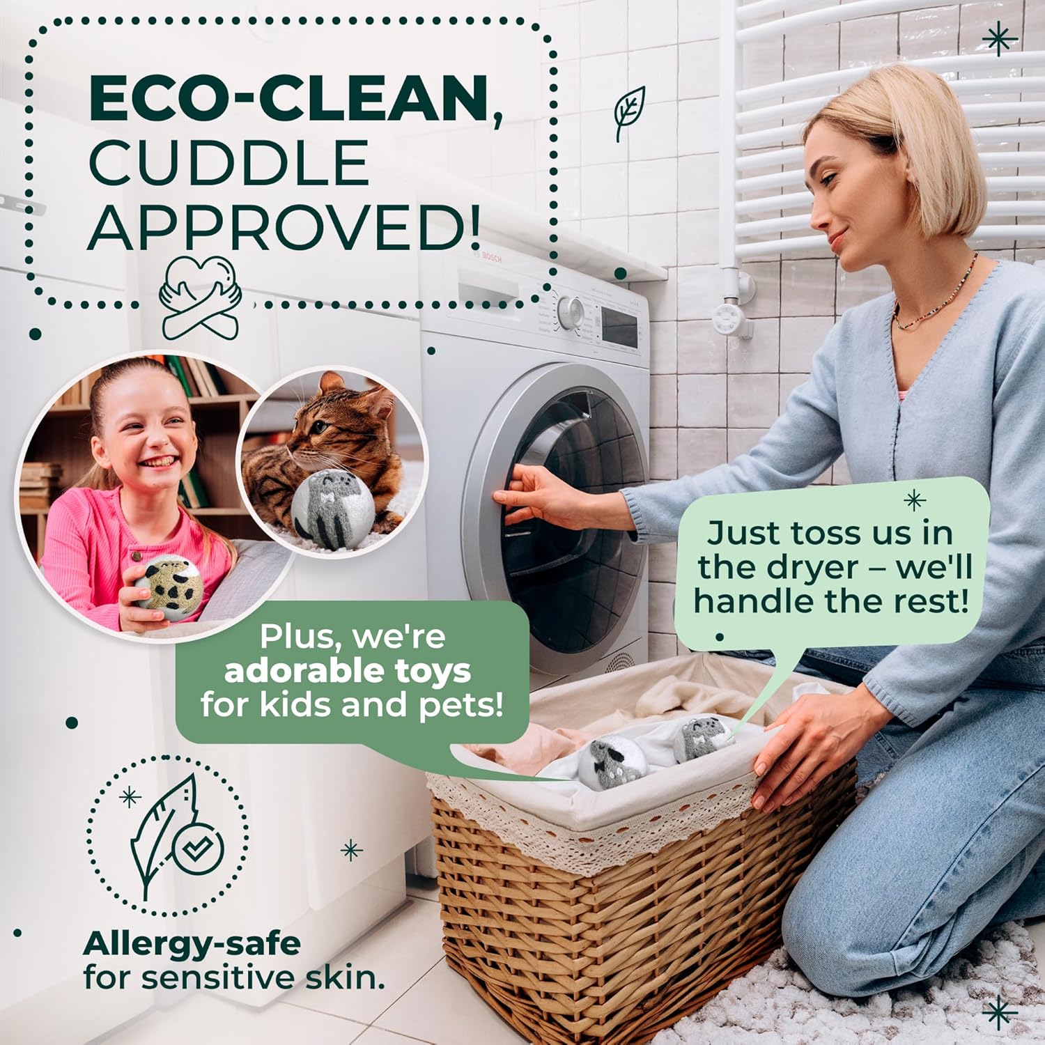 • NO MORE HARSH CHEMICALS: Replace dryer sheets with 100% natural wool dryer balls for safe laundry without skin irritants.