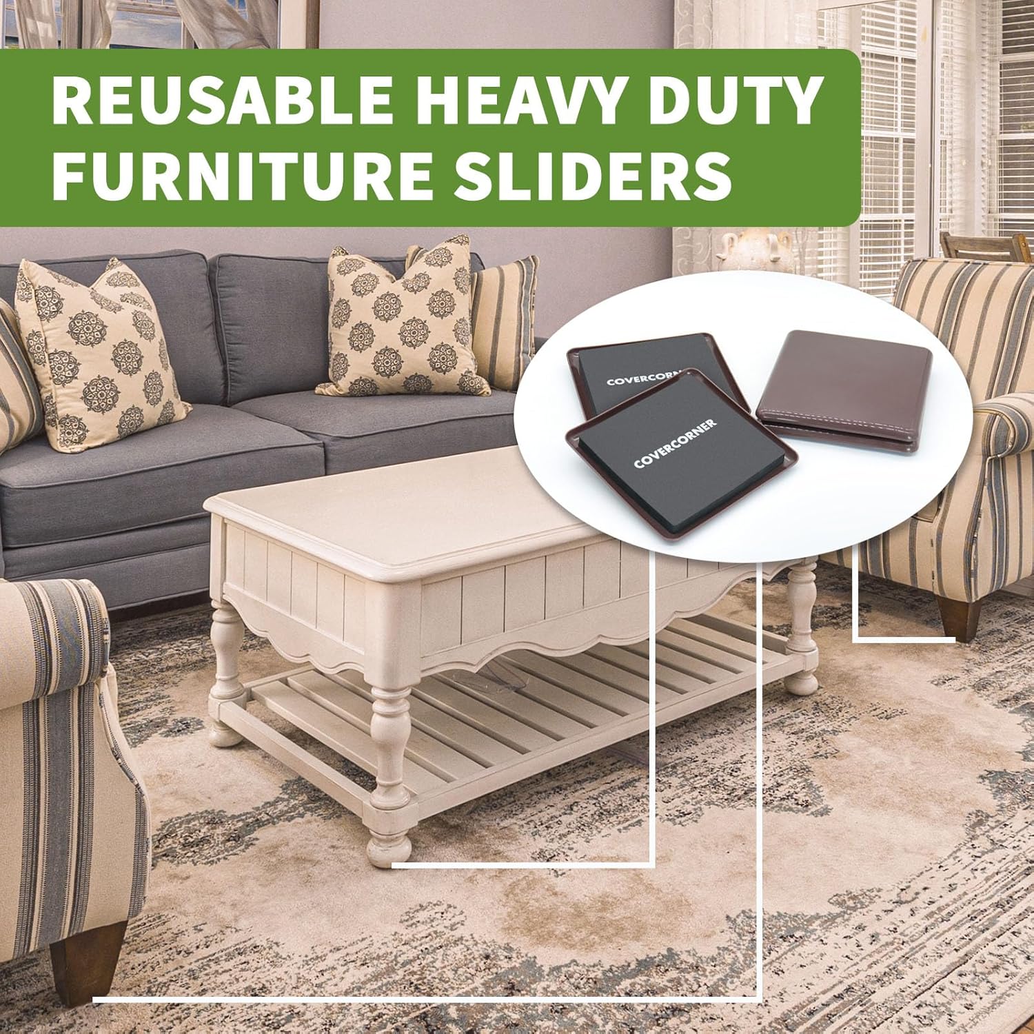 - Move Furniture Effortlessly - Our square heavy furniture sliders for carpet surfaces move easily across the surfaces of carpets and rugs. These couch sliders for moving furniture make cleaning or rearranging your furniture a one-person job. Move bulky and heavy objects with convenience. Furniture carpet sliders perfects for both round and square furniture legs and provide lasting protection with bottom furniture movers sliders.
