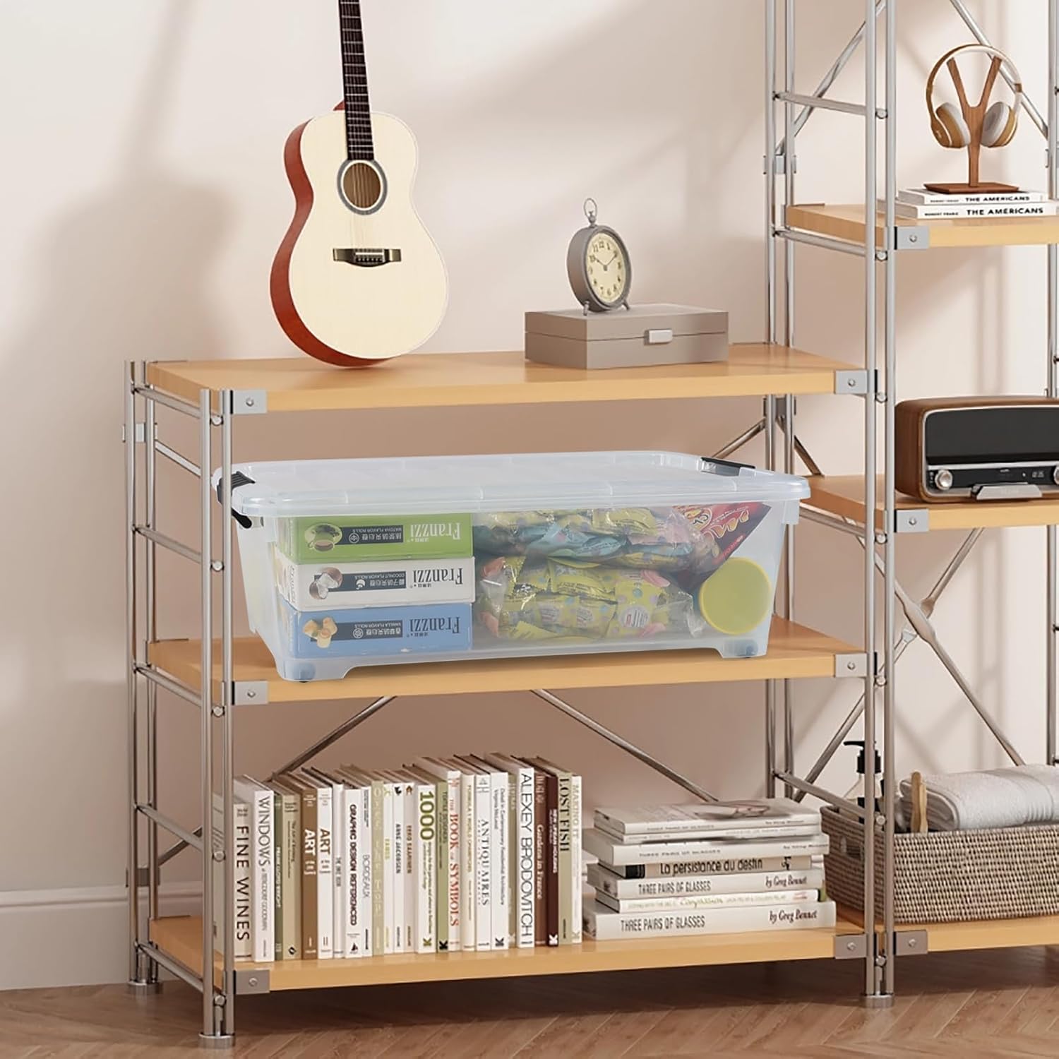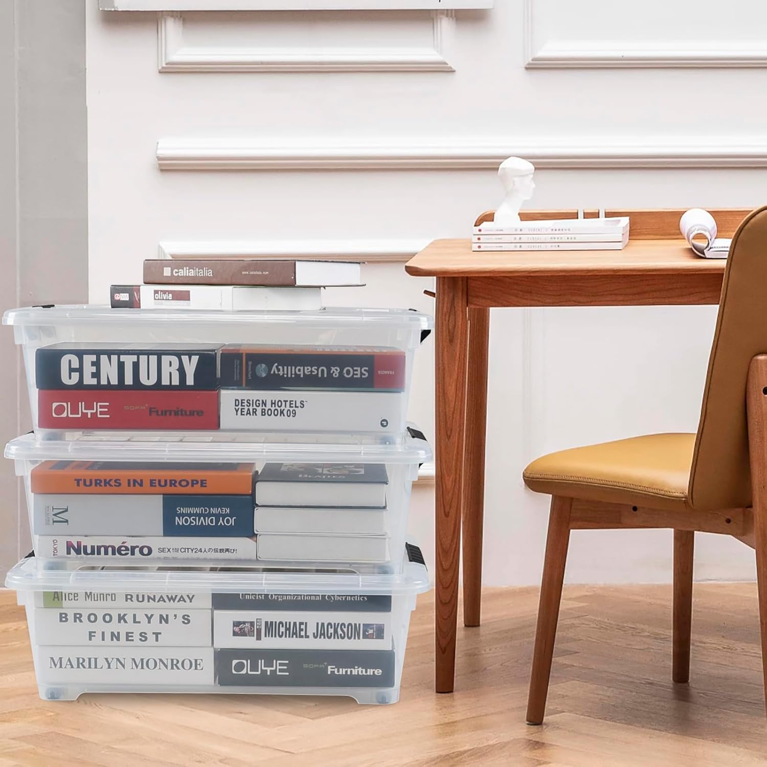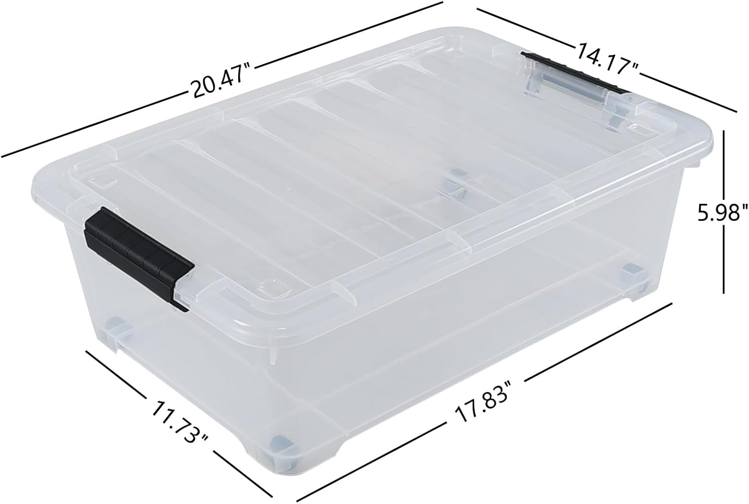 4 Pack 20 L Plastic Under Bed Storage Box with Lid, Clear Plastic Storage Bins Under Bed with Wheels