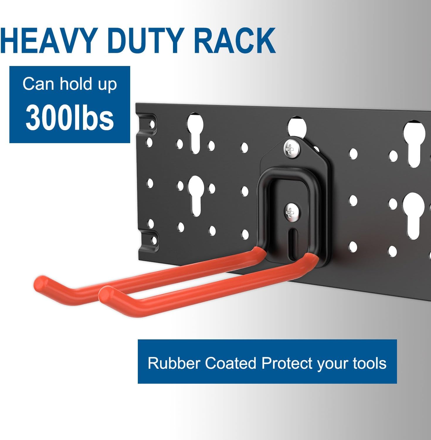 • MULTI-FUNCTIONAL STORAGE: Elevate your organization game with our garage storage system with enhanced versatility. Lock it onto the rail for tool storage, detach for wall installation, or convert it into shelf hooks for added options.