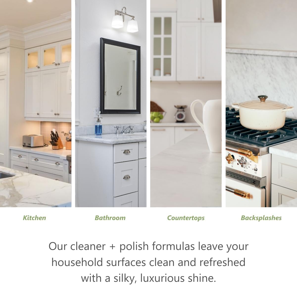 • EFFECTIVE FORMULAS - Unlike competitors who try to mix a polish and a cleaner into one product, we have separated the two and offer MORE Stone & Quartz Cleaner + Protector and MORE Stone & Quartz Polish in this twin pack. Because these products are separate, you can be sure your surface gets cleaned and polished as each spray has their own effective ingredients.