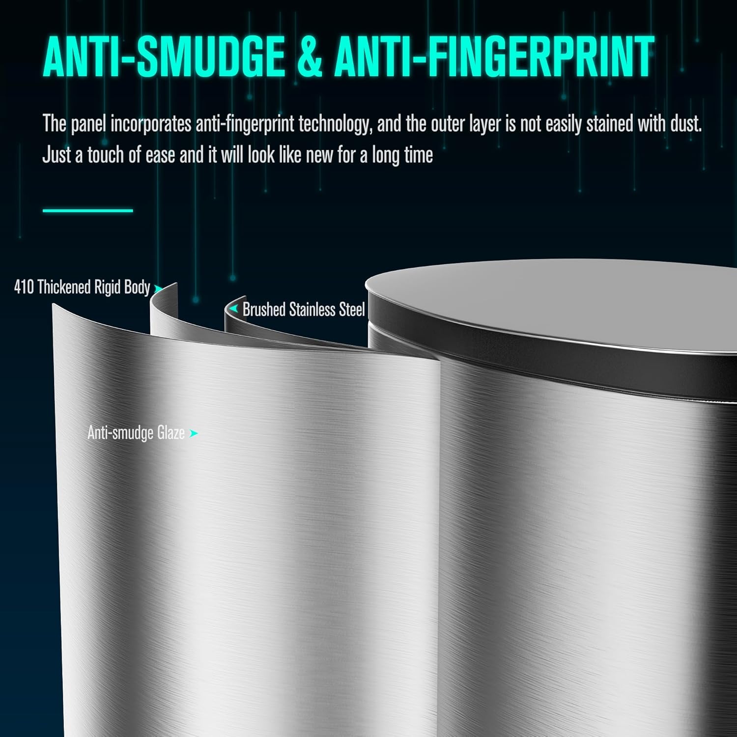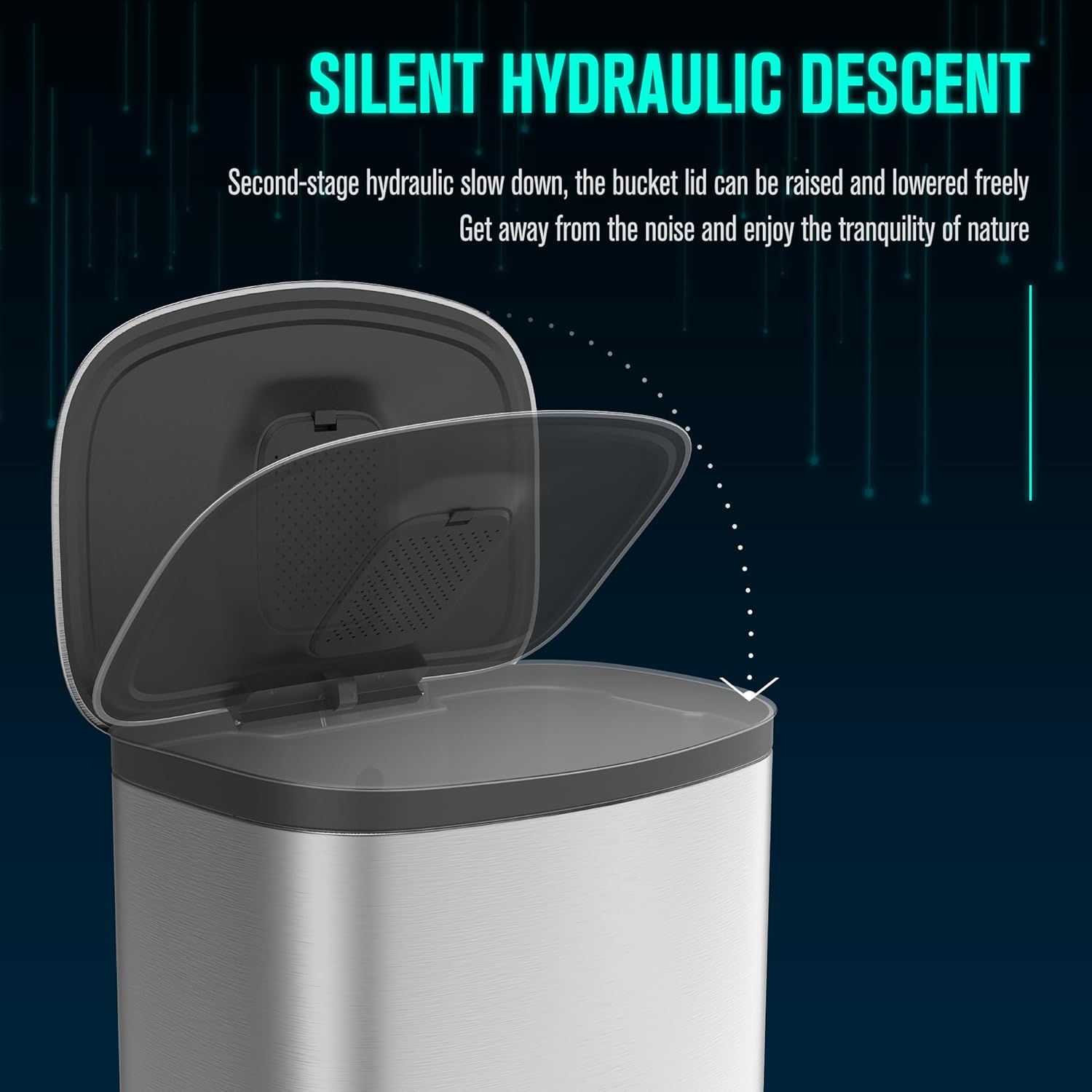 - Durable and Easy to Maintain: Our trash can features a smudge-resistant, durable stainless steel exterior, ensuring it stays looking pristine for longer. The heavy-duty plastic interior bucket is easily removable for hassle-free waste disposal, while the stay-open lid lock facilitates effortless bag changes and cleaning.