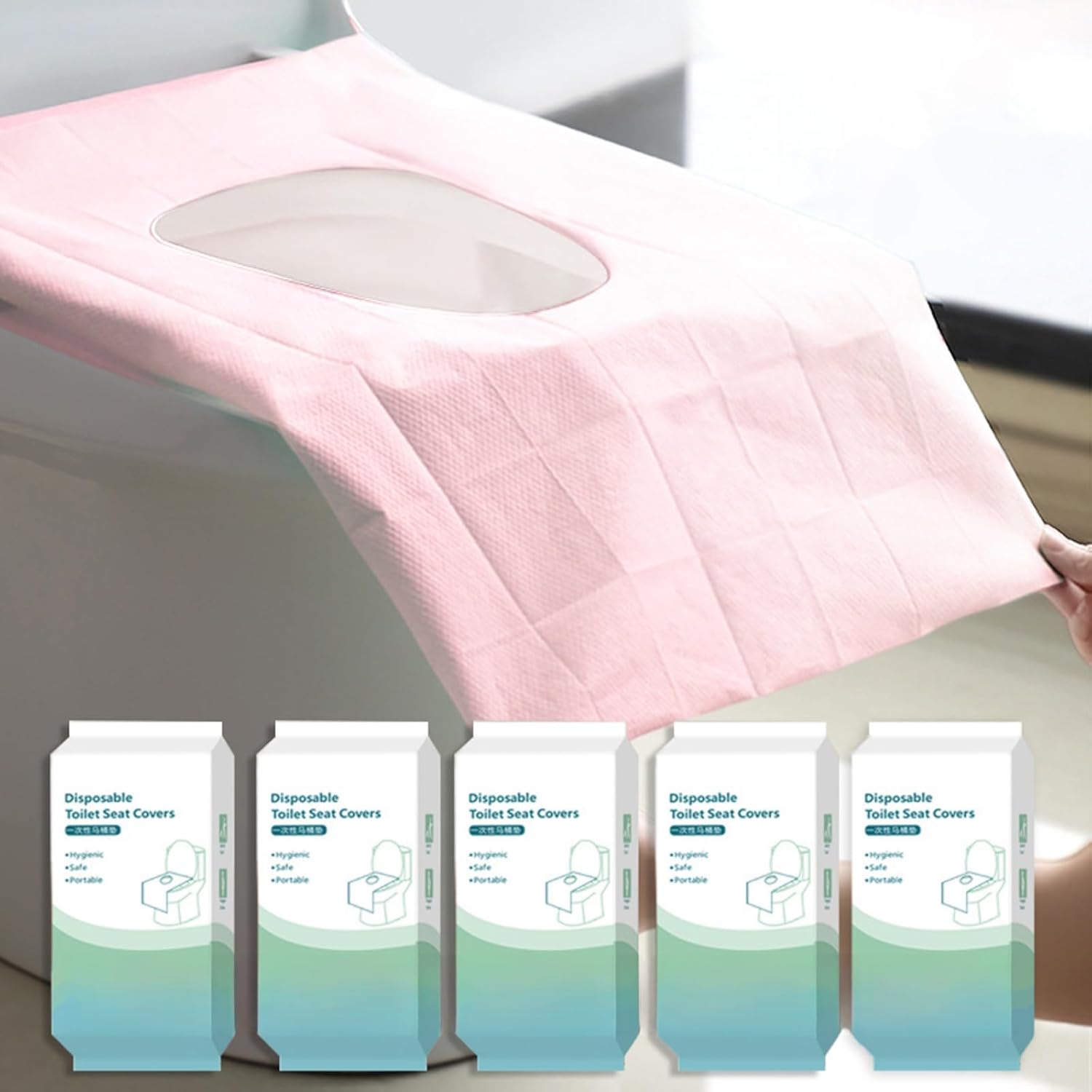 50 Pack Toilet Seat Covers Disposable 16x24 Inch XL Portable Toilet Liners Travel Seat Cover for Outdoors,Hotel, Hospital, Travel, Public Toilet Seat Cover (50pack, PINK)