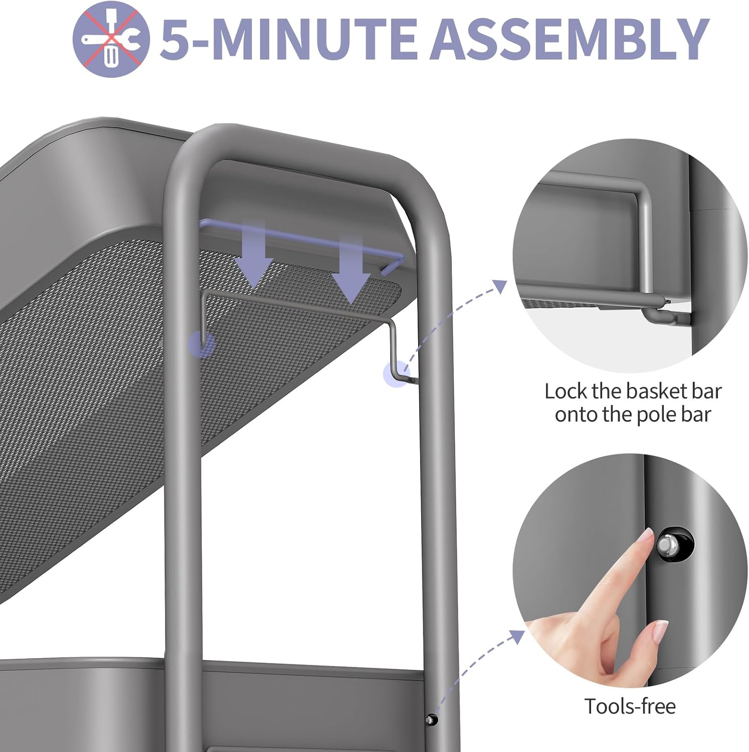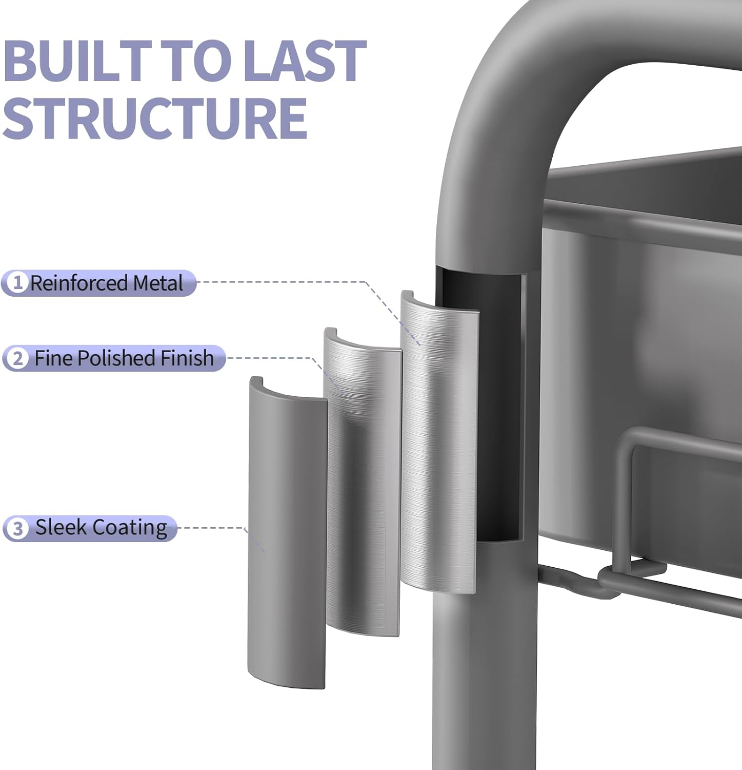 - Durable Heavy-Duty Metal Construction – Built to last, this rolling cart features 3 sturdy metal baskets and 4 durable wheels. The sleek, coated metal poles ensure long-lasting use, making it ideal for heavy-duty storage in any room, including as a bathroom cart or pantry organizer.