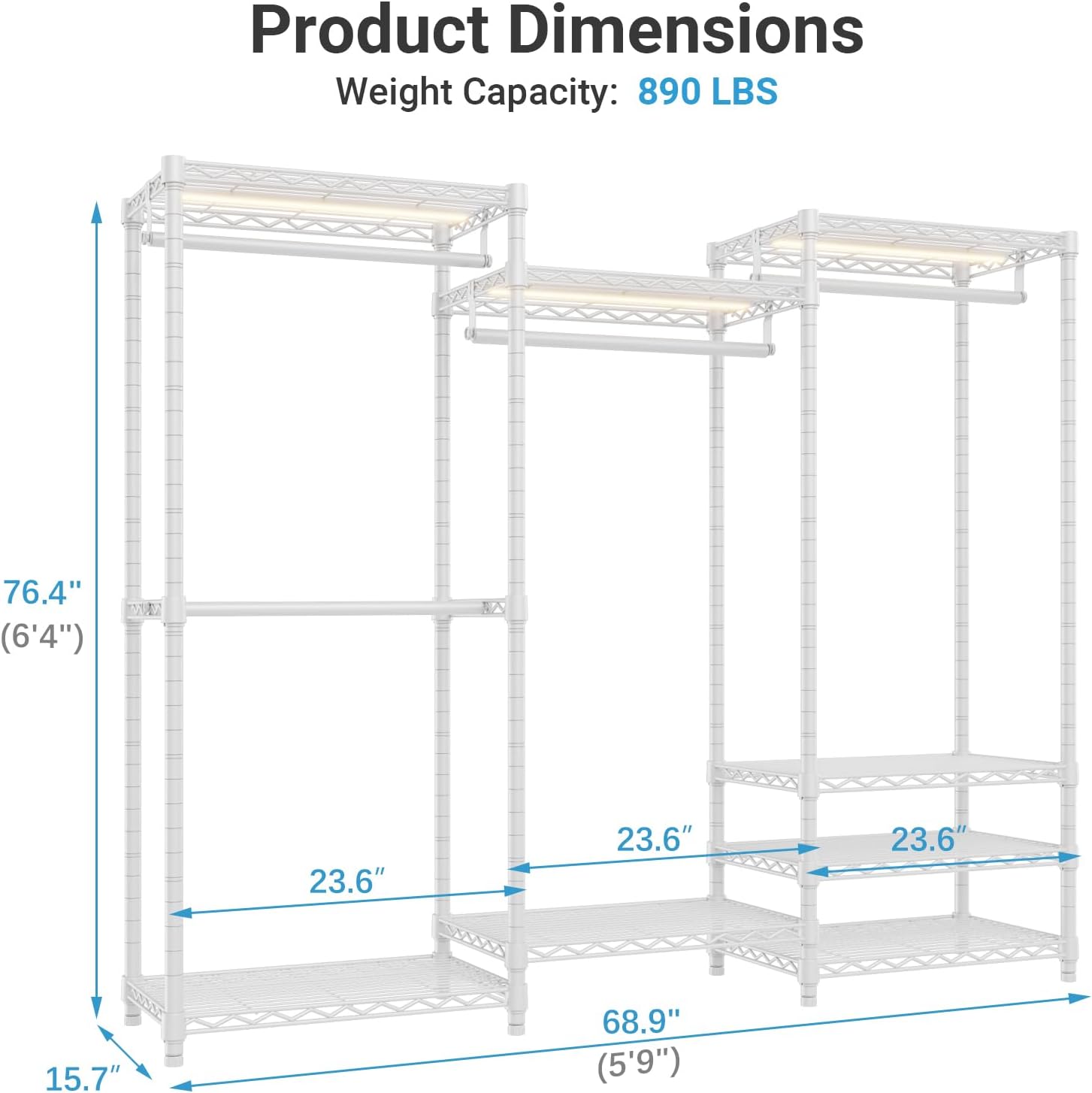 VIPEK V5L Garment Rack Heavy Duty Clothes Rack with Dimmable LED Lights, 3000K Warm White, Portable Closet Wardrobe Freestanding Metal Clothing Rack for Hanging Clothes, Max Load 890lbs, White