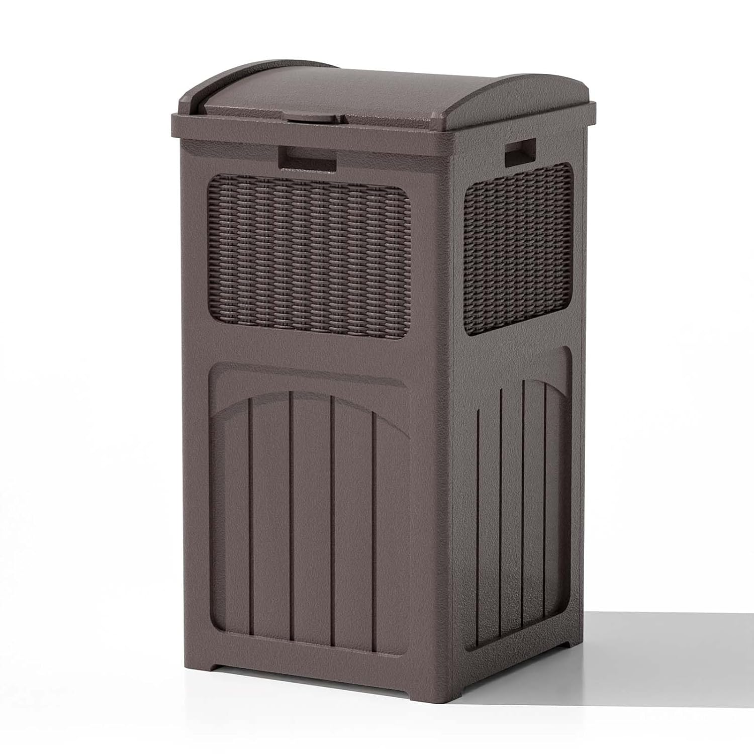 Patiowell 36 Gallon Outdoor Trash Can, Resin Outdoor Garbage Can with Lid for Patio, Backyard, Deck, Dark Brown