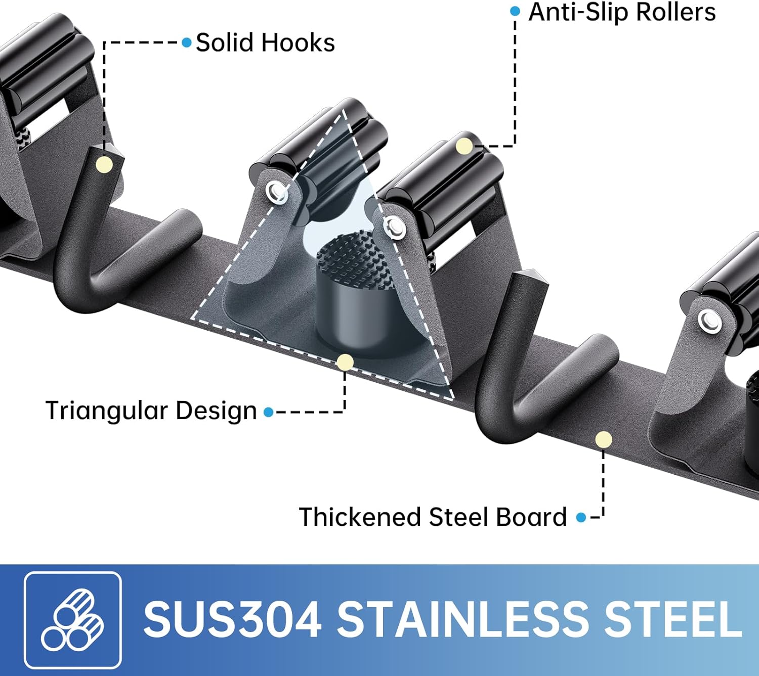 • 🏡【STURDY BROOM HOLDER】Each broom holder wall mount has 4 racks and 5 hooks. Our broom holder is made of sturdy 304 stainless steel which means it is corrosion-resistant, rustproof and waterproof. Compared with the plastic broom rack, our broom organizer is more stronger and has a longer service life.