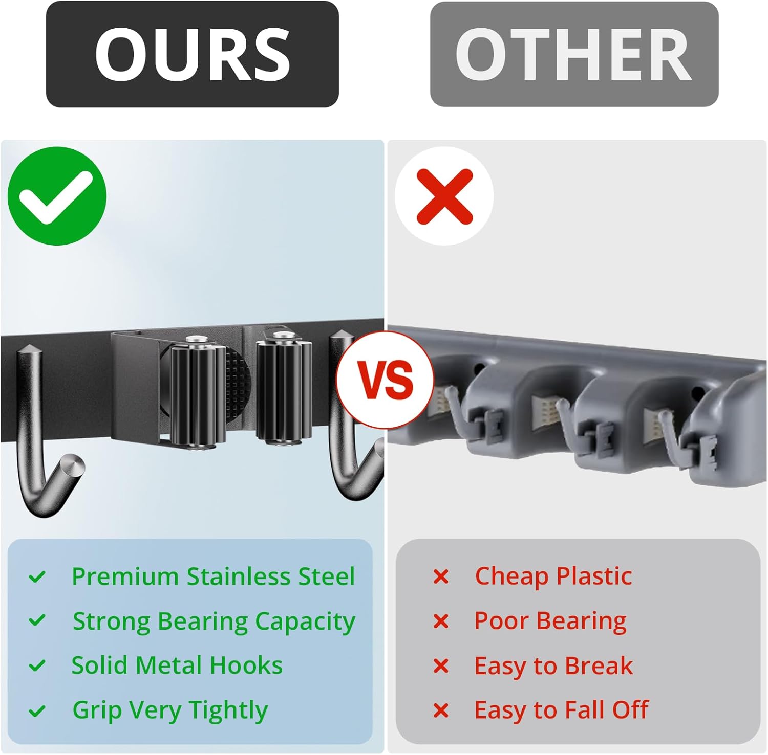 • 🏡【LIFE’S GOOD HELPER】ZONGOOL broom organizer wall mount makes your life out of chaos and everything is organized. High-quality space organizer, quick-reply customer service, just "Add to Cart" now!