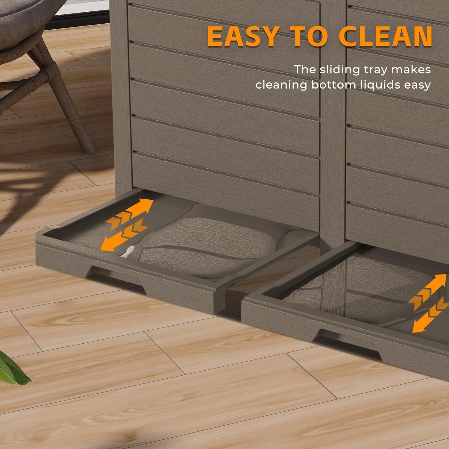 • Easy to Clean: Featuring a sliding, removable tray at the bottom, this trash can easily stores any leaked liquids. The tray can be washed or wiped clean, making maintenance simple and hassle-free.