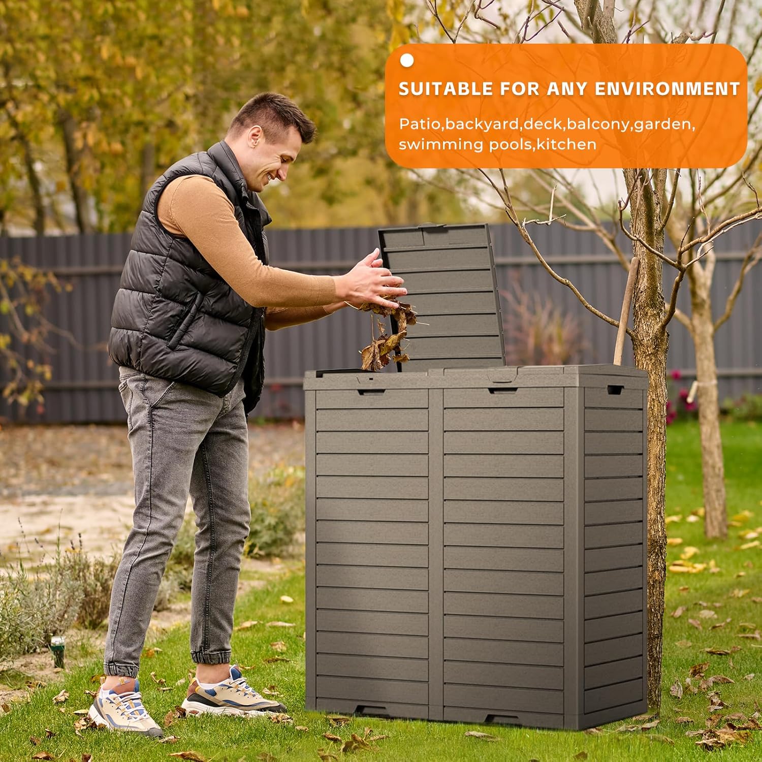 • Stylish Aesthetic Design: Featuring a decorative wicker pattern, faux wood grain, and modern design, this trash can enhances the aesthetic appeal, perfectly complementing other furniture and adding a stylish touch to your backyardspace.