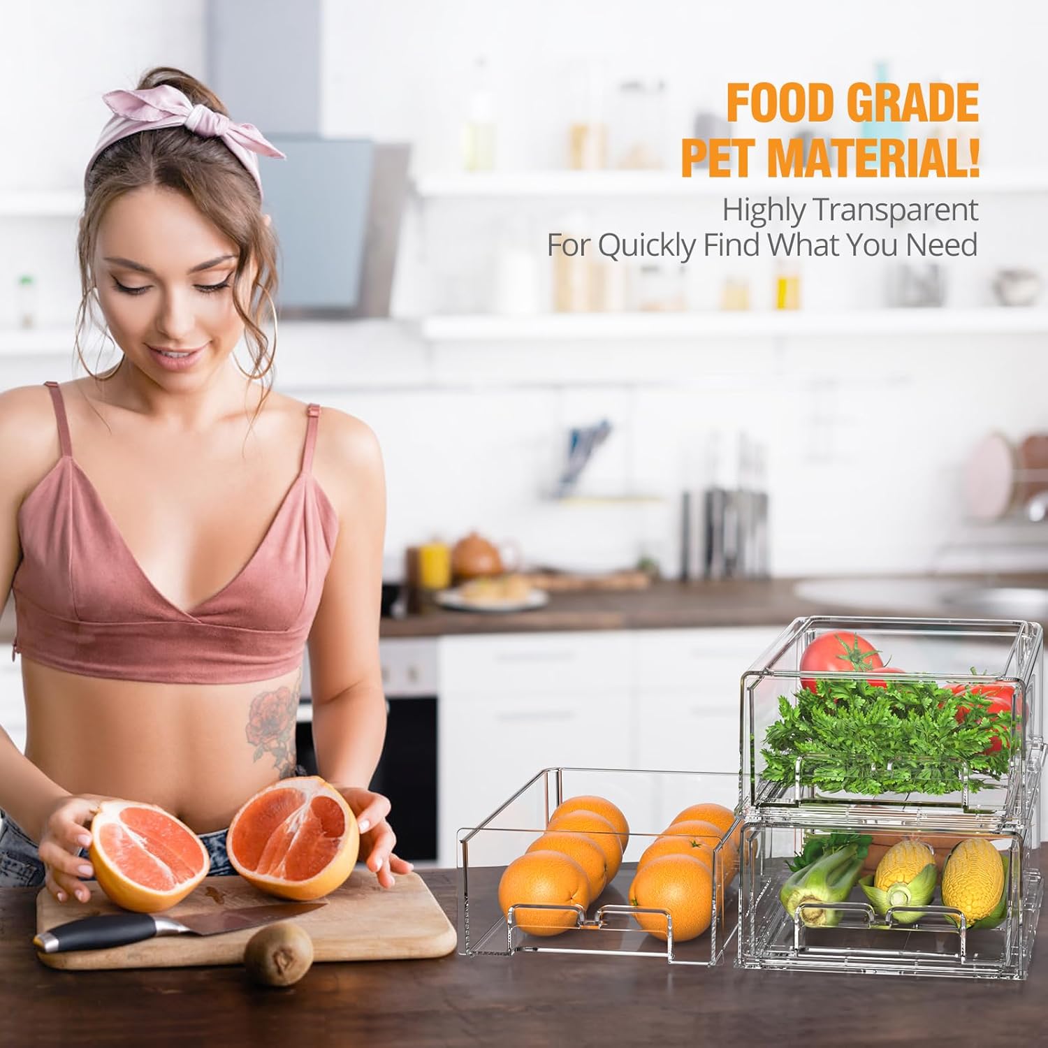 • AVOIDING WASTE FOOD AND SIMPLIFY MEAL PREP : Clear refrigerator organizer bins allow you to easily see what's inside, no food wasted because you can't see it. keeping your go-to ingredients like onions, garlic, and vegetables in these pull out fridge organizer drawers. Prepare dinner with ease and efficiency by having everything you need at your fingertips