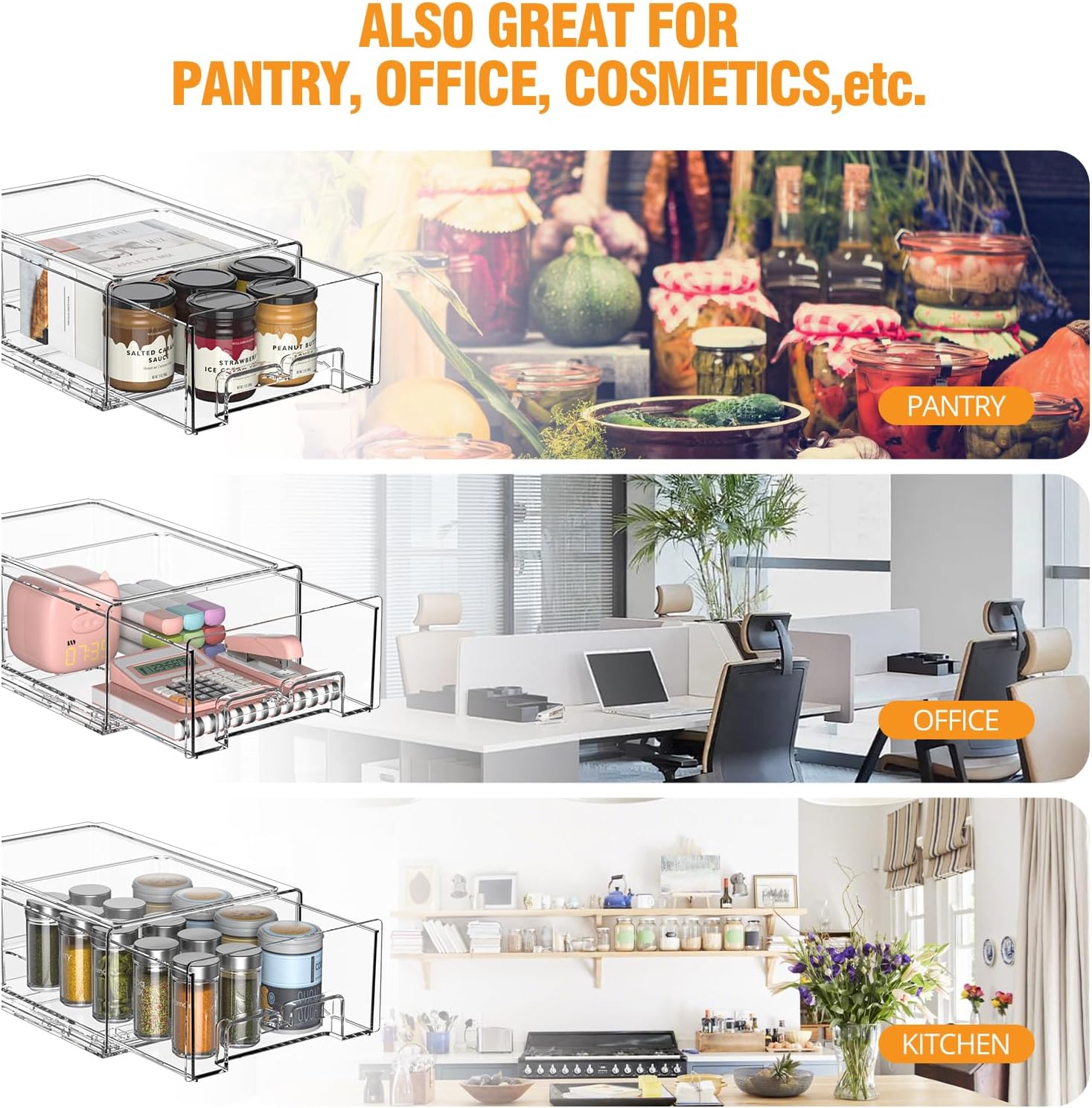 2 Pack Stackable Storage Drawers - Clear Refrigerator Drawers for Refrigerator Organizers and Storage, Acrylic Fridge Drawer Organizer with Handles for Bathroom, Undersink, Cabinet, Pantry, etc