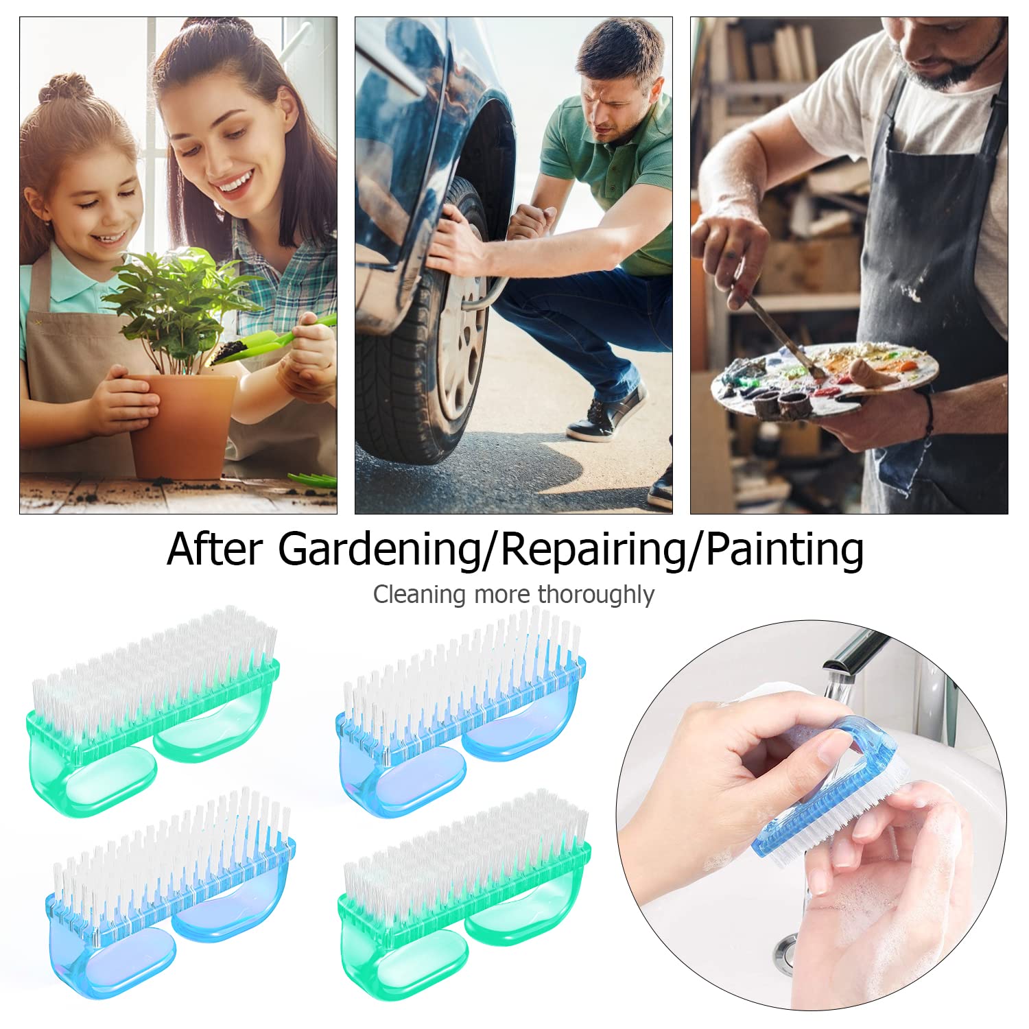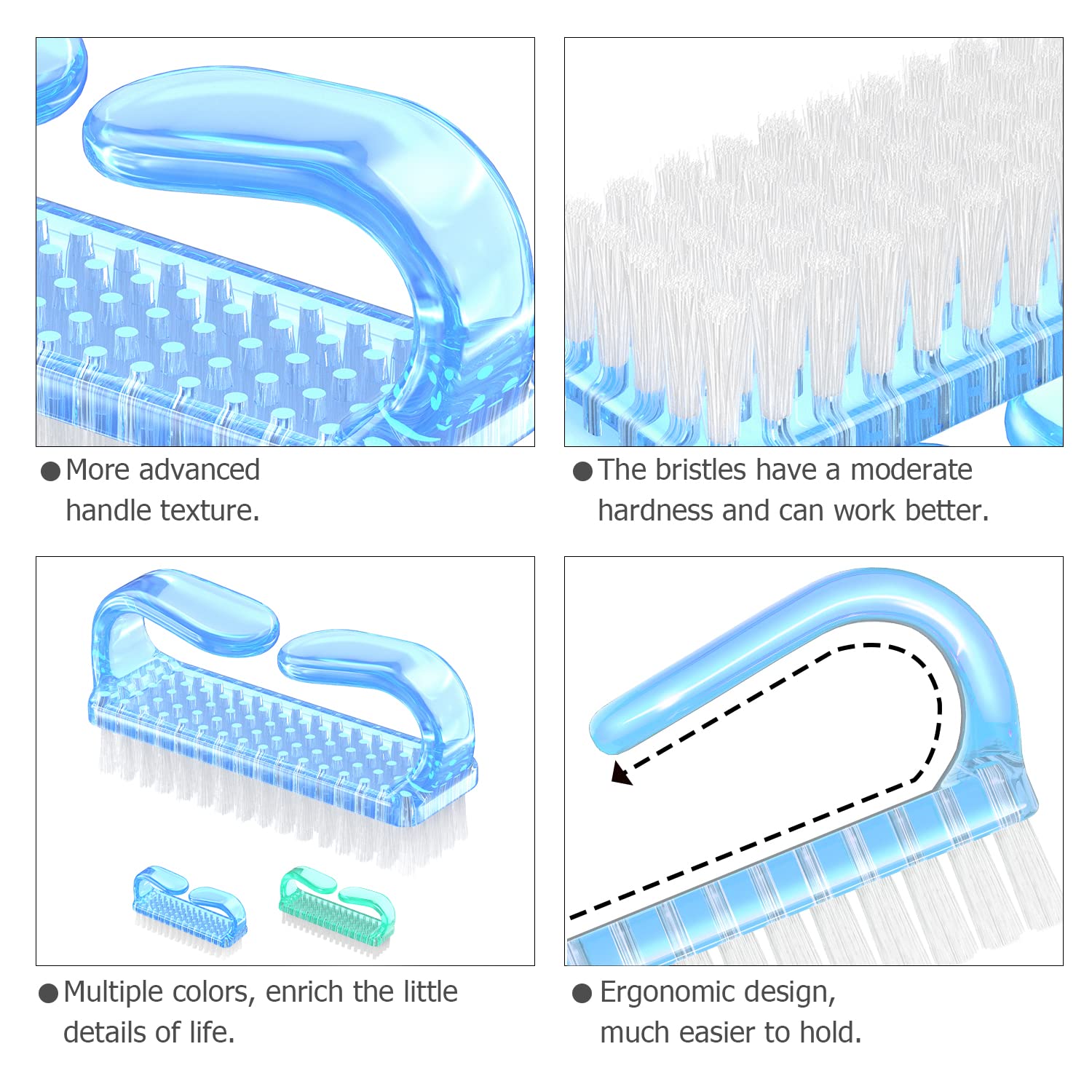• 【New Design】: We have made some improvements. The Handle fingernail brushes have a larger gripping space, much easier to hold and convenient to use.
