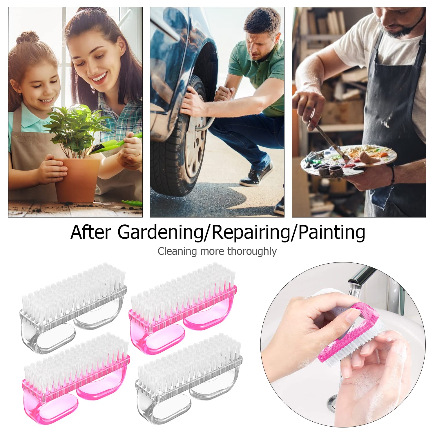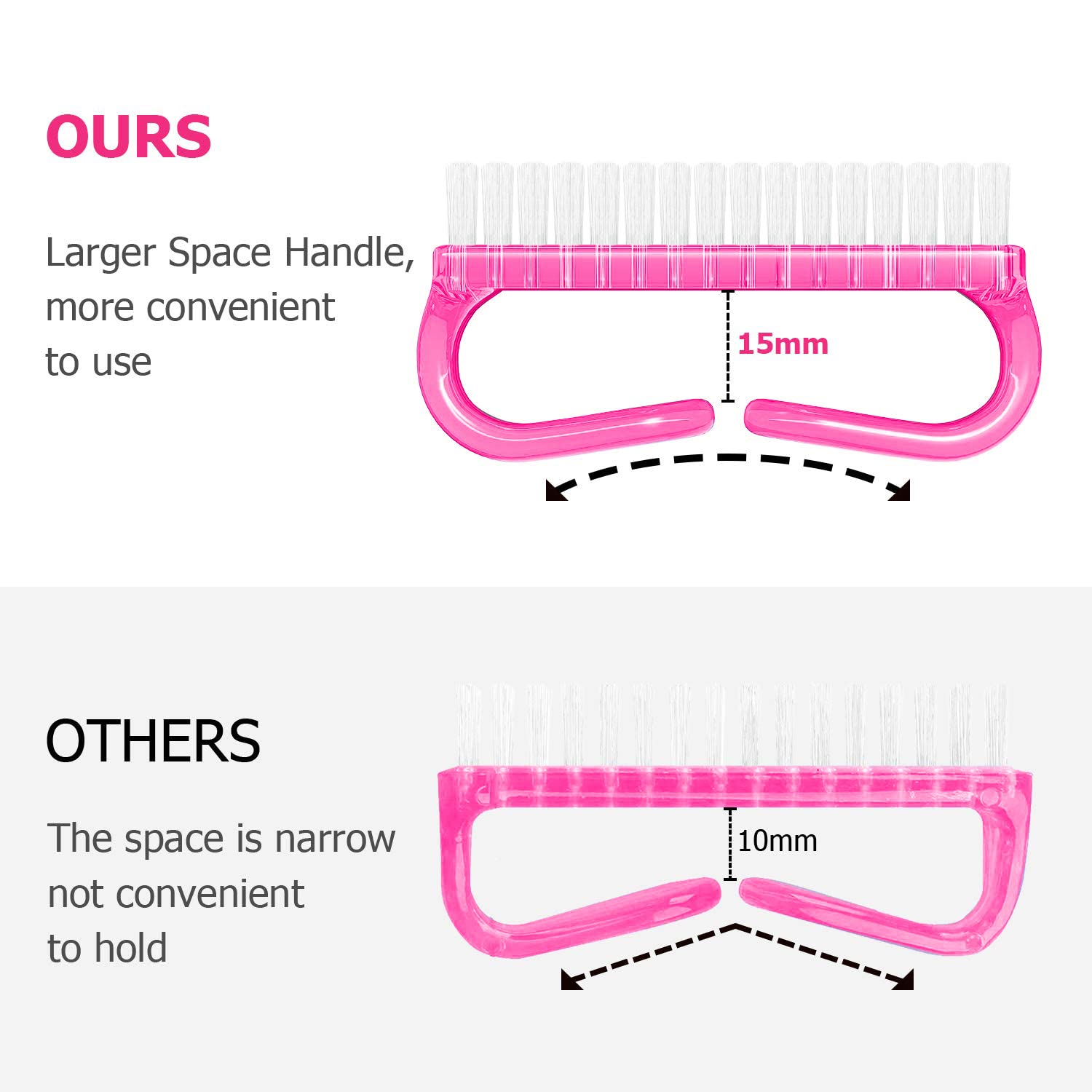 • 【New Design】: We have made some improvements. The Handle fingernail brushes have a larger gripping space, much easier to hold and convenient to use.