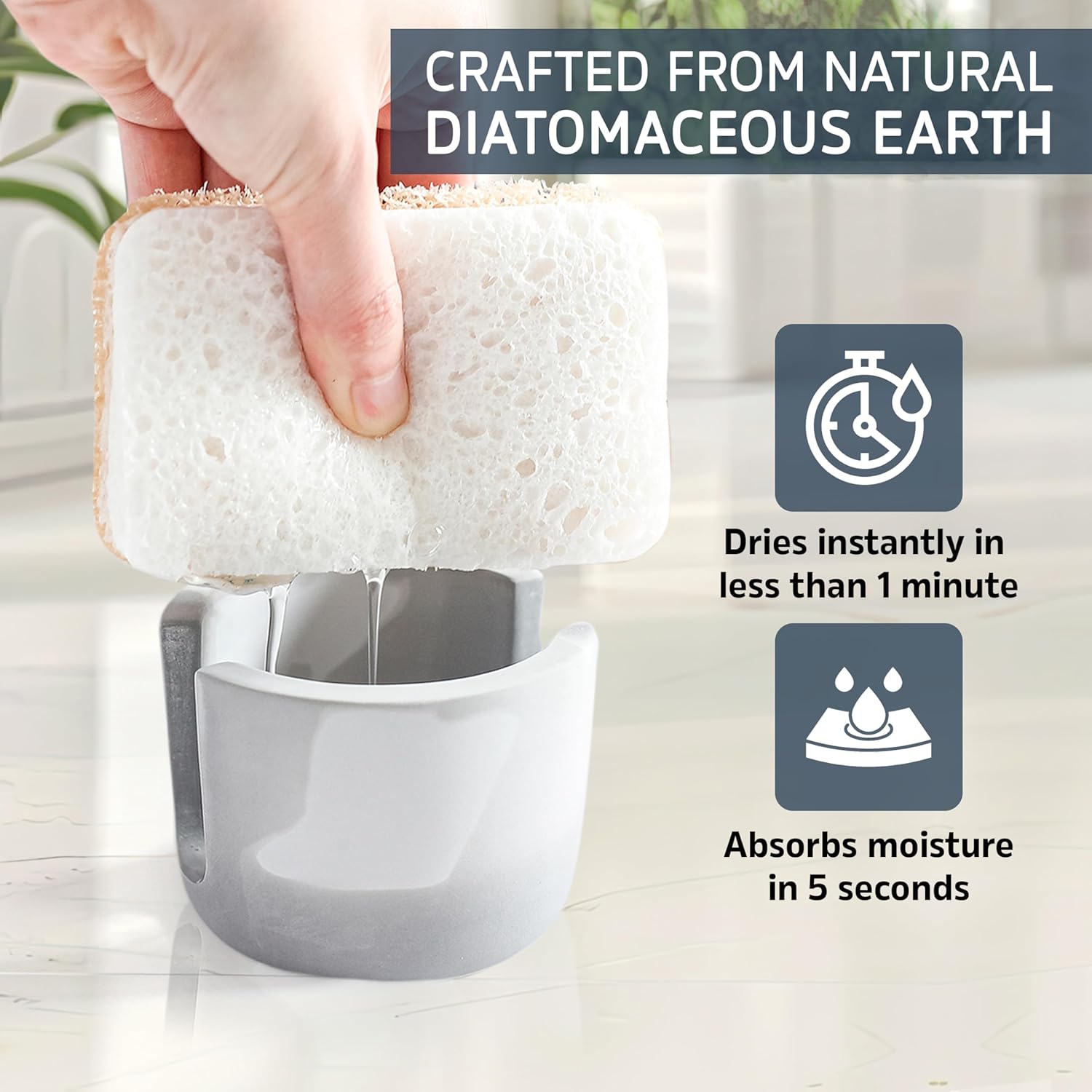 • Super Absorbent & Fast Drying: Instant Self - Drying within 60 seconds & Soak up to 150% of its weight in water from sponge. Diatomite Stone Holder Ensures Fast Drying and Effective Water Absorption for a Clean and Dry Kitchen Counter.