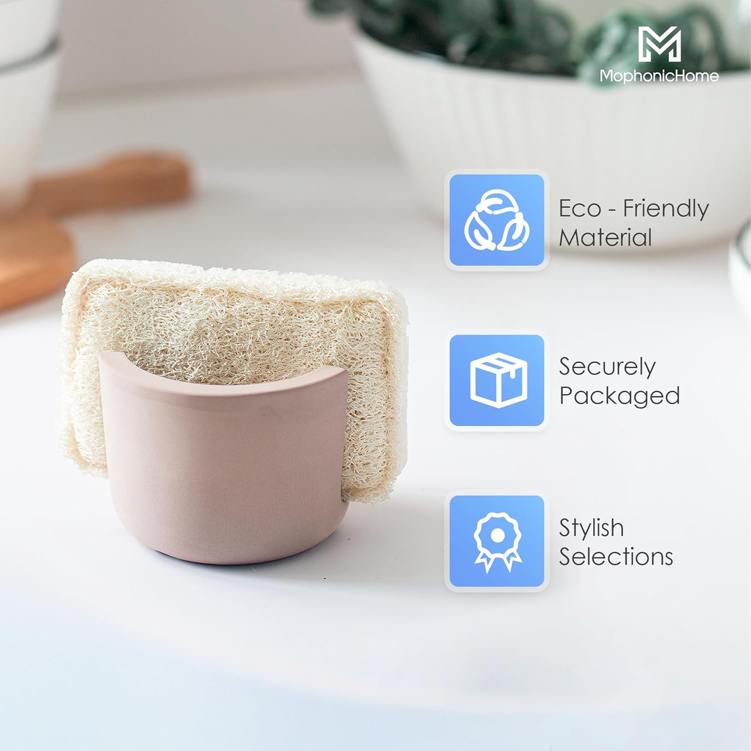 MOPHONICHOME Sponge Holder, Stone Sponge Holder For Kitchen Sink - Diatomite Kitchen Sink Caddy, Quick Dry, Super Absorbent, Modern Design, Brown