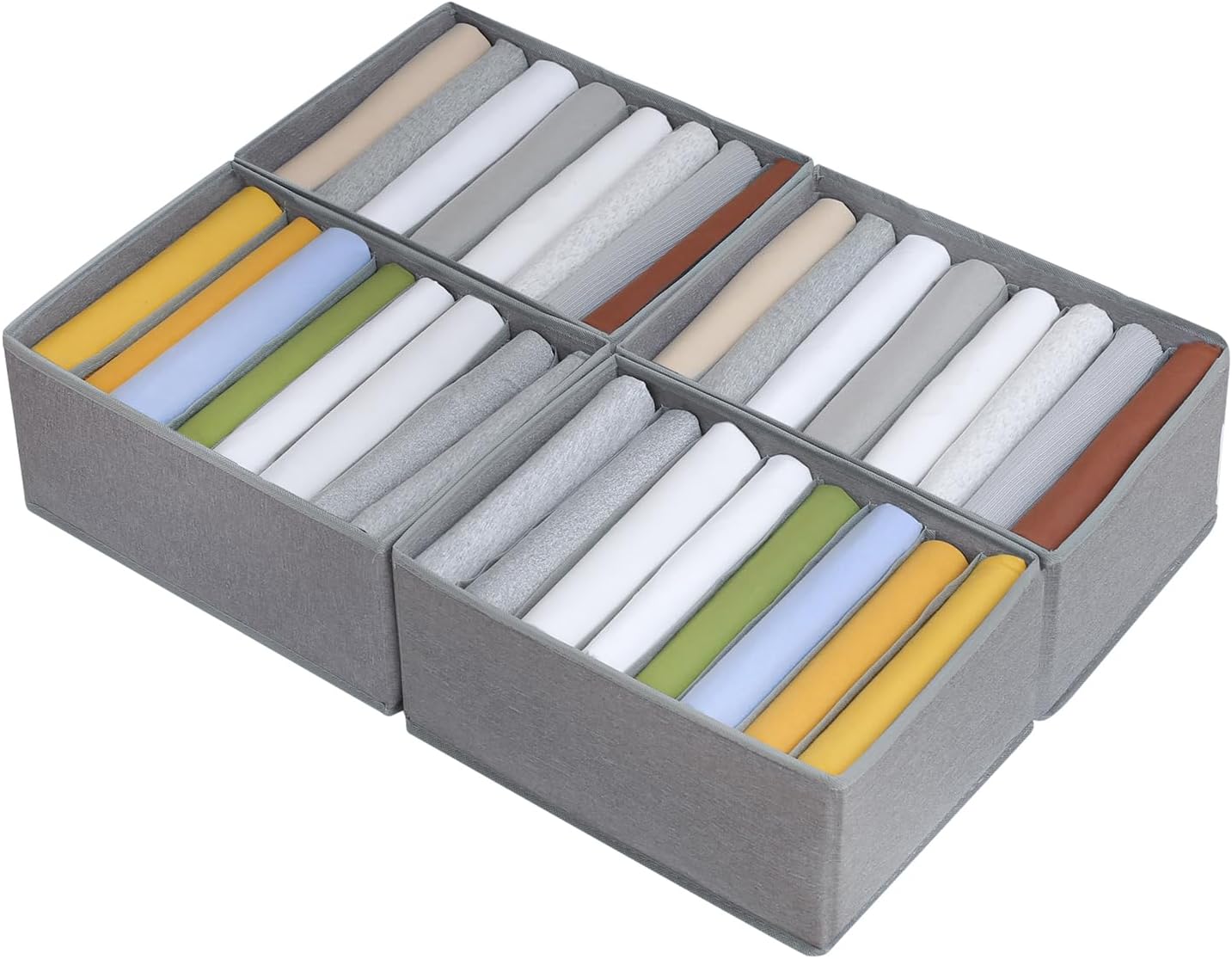 Qozary 4 Pack Drawer Organizers for Clothing, 8 Grids Foldable Closet Organizers and Storage Bins for Bedroom, Dresser Organizer Boxes for Thin T-shirts, Tank Tops