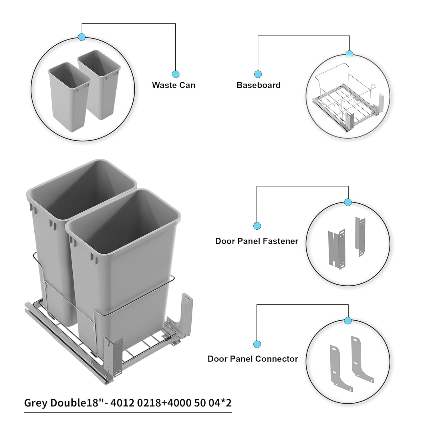 • EASY TO INSTALL: Easily mount the pullout sliders to the inside bottom of the cabinet, slip the fully assembled wastebasket pullout into the sliders and attach the front of wastebasket pullout to the cabinet door. All hardware and instructions are included.