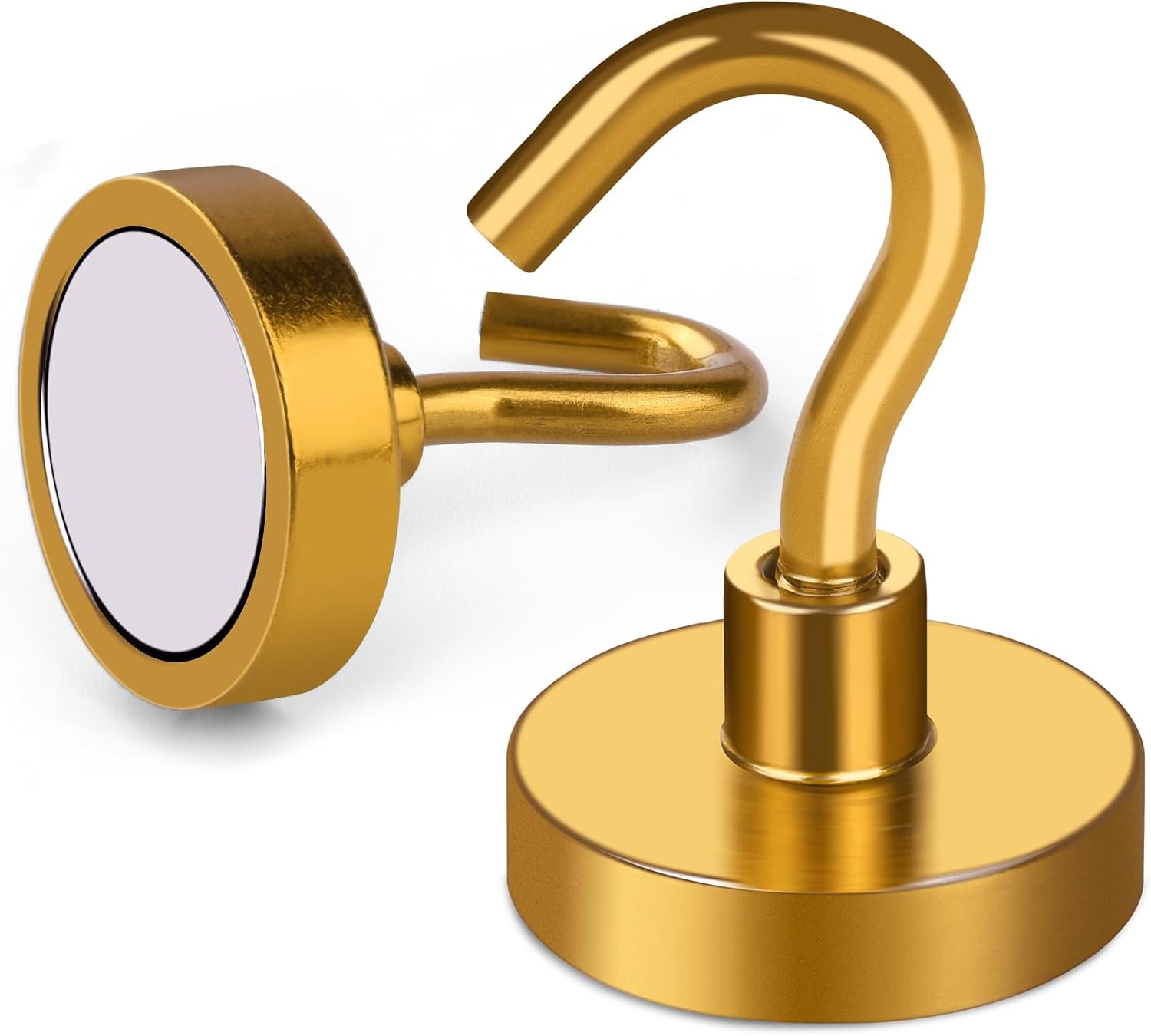 MIKEDE Magnetic Hooks Heavy Duty, 40 Lbs Magnet with Hooks for Cruise Cabins, Strong Magnets Neodymium for Hanging, Magnetic Wall Hooks for Refrigerator, Locker, Workplace(Yellow, 10 Pack)
