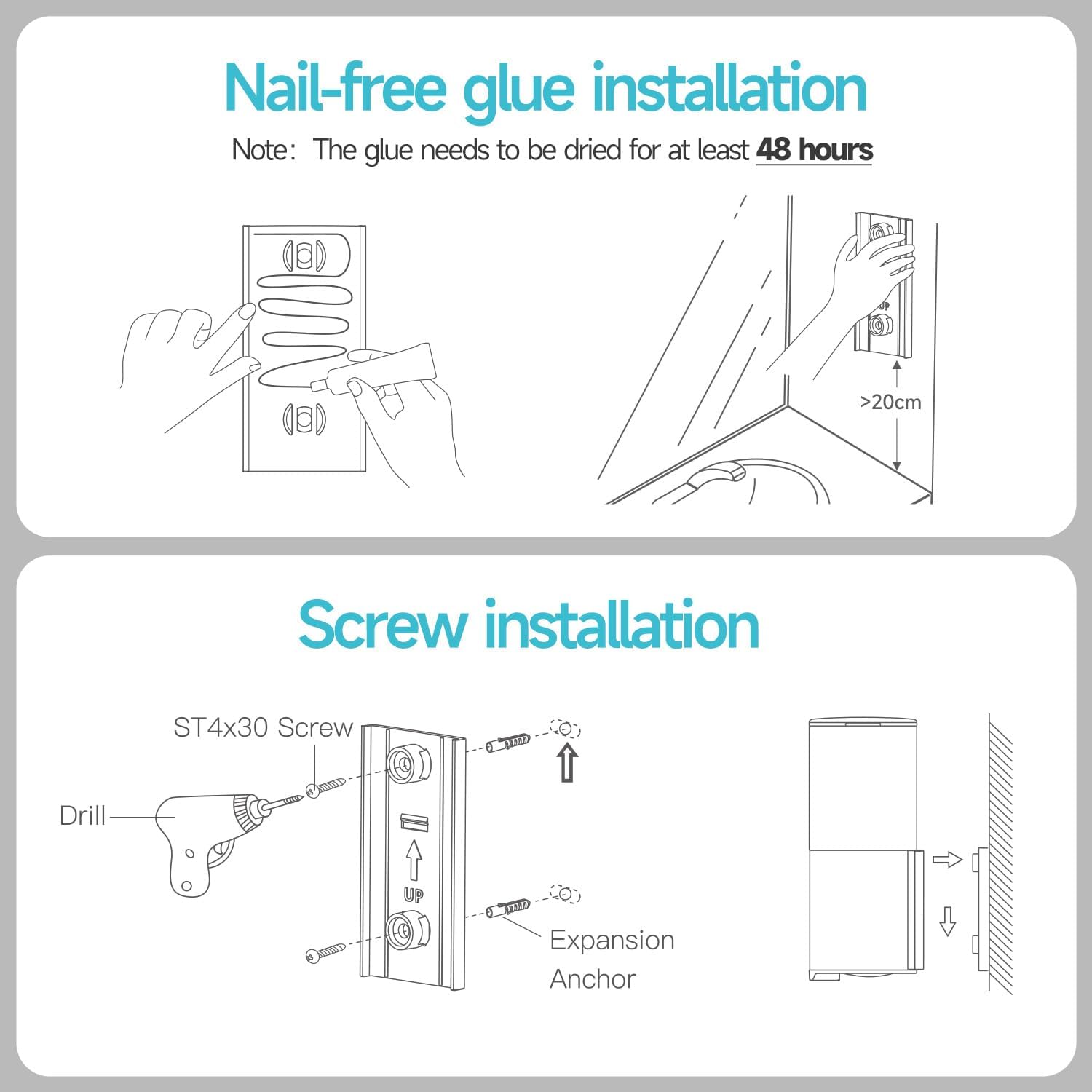 • Flexible Installation: Includes screws and nail-free glue for mounting. Nail-free glue can only be used on clean, dry, and flat walls, and needs 48+ hours for fixation