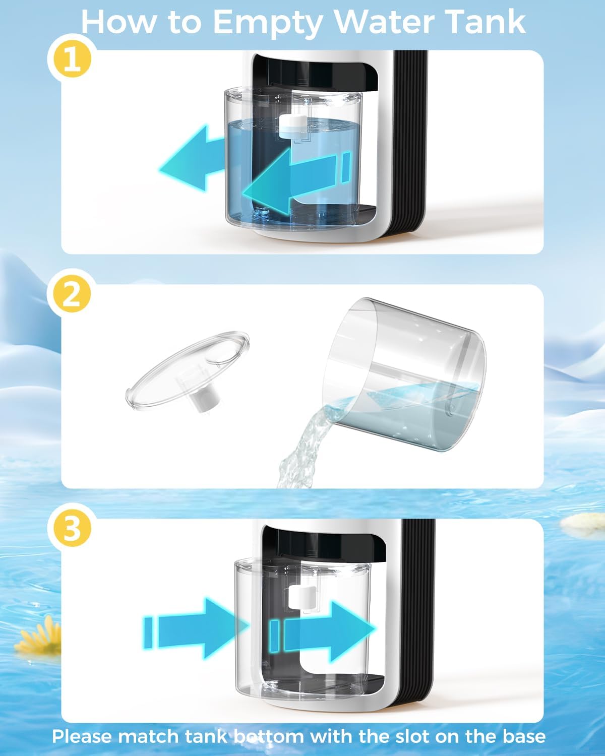 - Auto Shutoff Dehumidifier: Worry-free operation with automatic shutoff feature. Dehumidifiers for bedroom prevents leaking or overflow when water tank is full. Red indicator flashes to remind you to empty the tank of dehumidifier. Easy to use, simply empty the tank and continue enjoying comfort and health