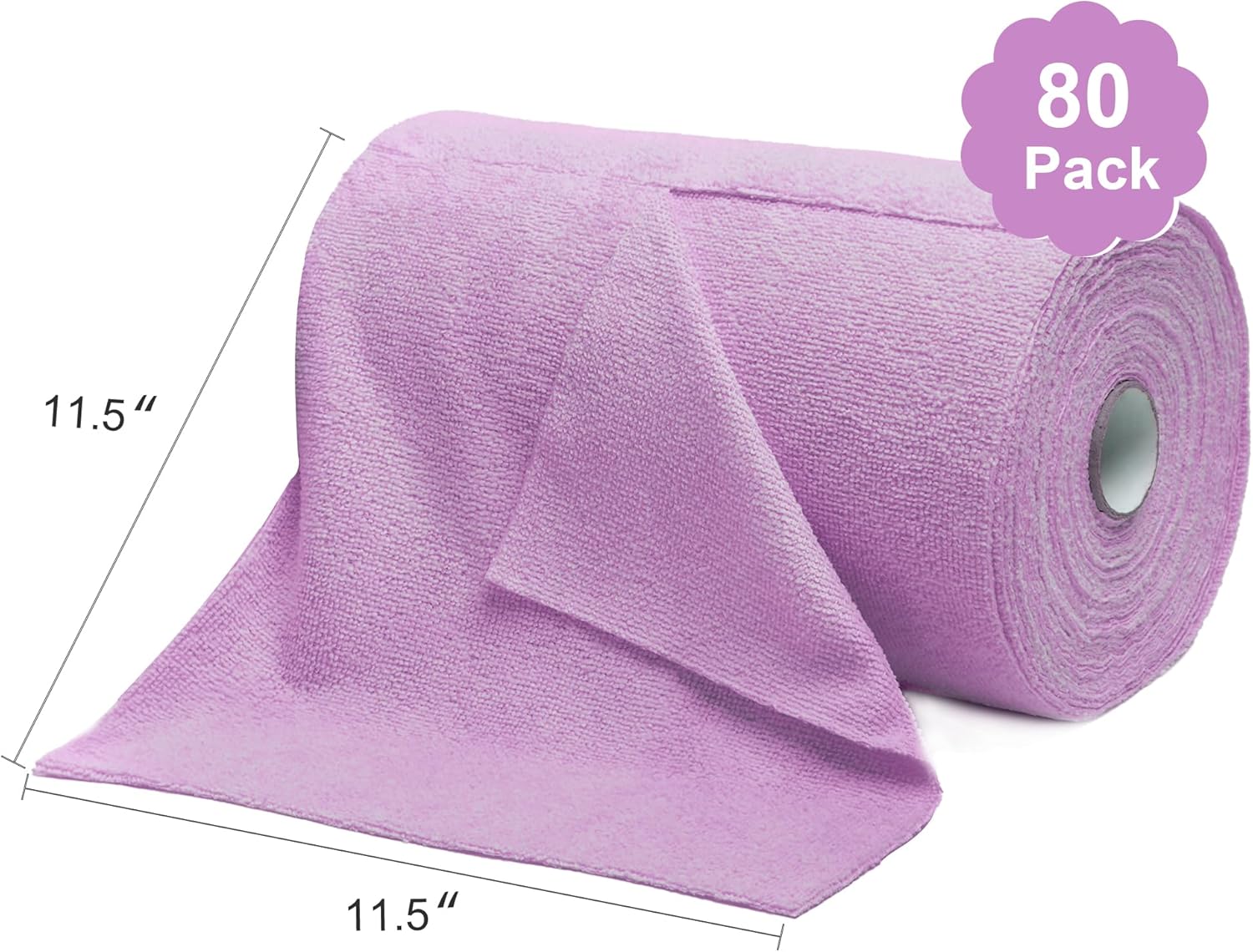 LIVOS Microfiber Cleaning Cloth Roll - 80 Pack, Reusable Paper Towels Purple Tear Away Towels, Microfiber Towels for Cars, Super Absorbent Lint Free Cleaning Rags for House,Kitchen,Window-11.5"x11.5"