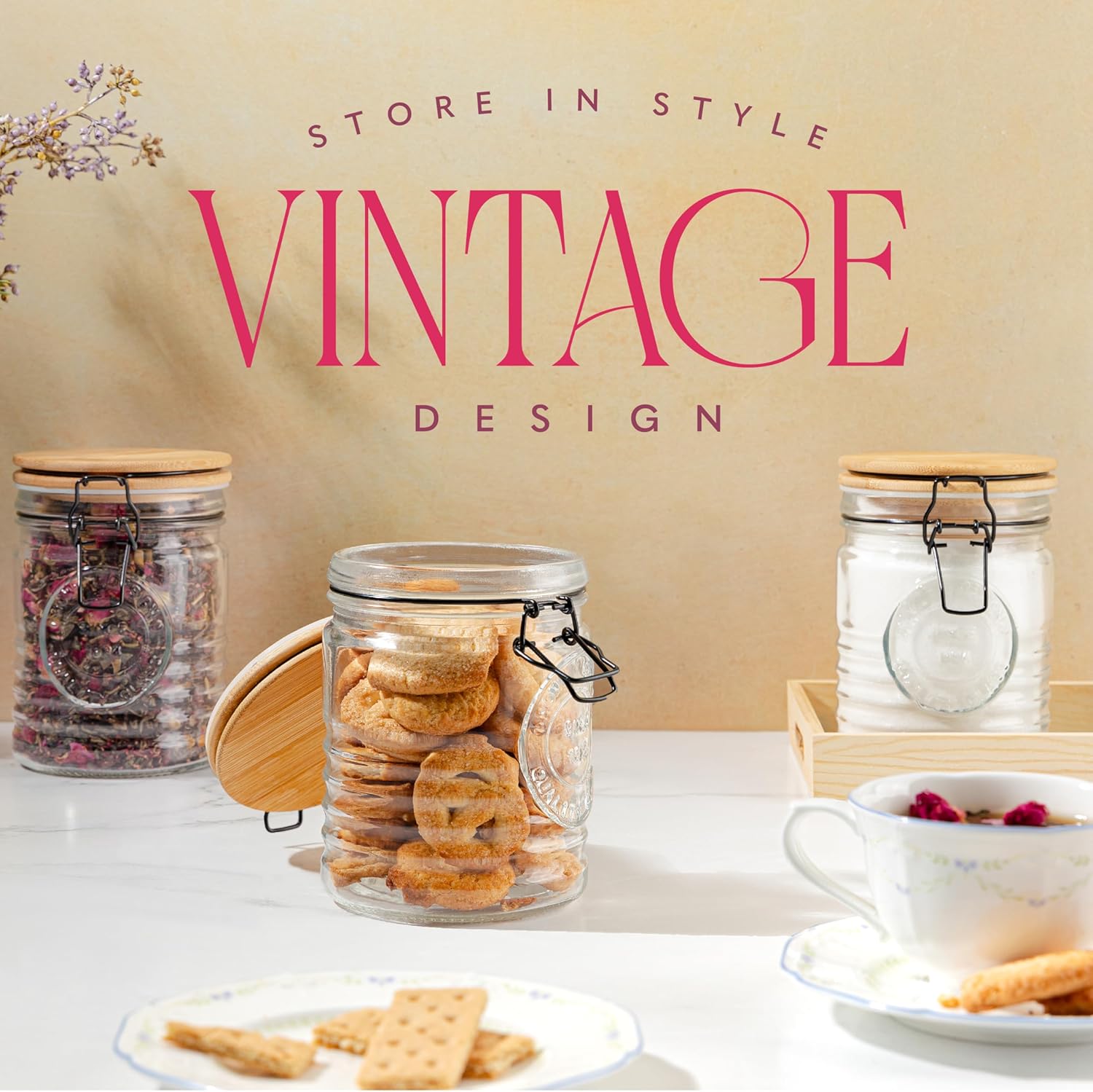 - Quick Monitoring: Transparent glass construction enables quick monitoring of contents, ensuring you never run out of your favorite pantry essentials.