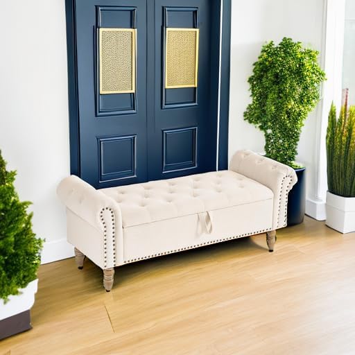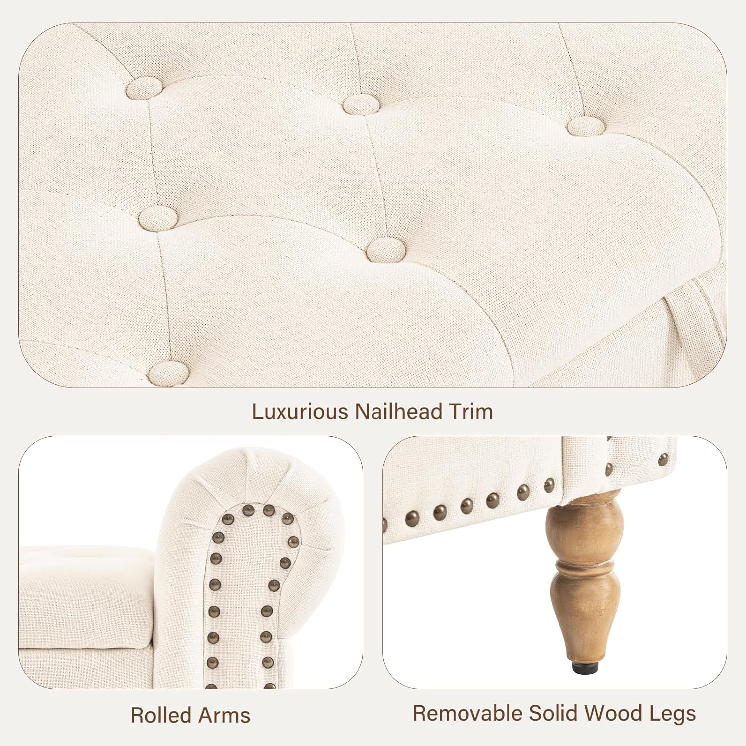 - [Mid-century Modern Bench] -Inspired by modern mid-century design concept, our upholstered bedroom storage bench end of bed features a foam-padded seat with high-quality faux linen. Rolled arms, button tufts and a luxurious nail head trim offer a nice finishing touch.
