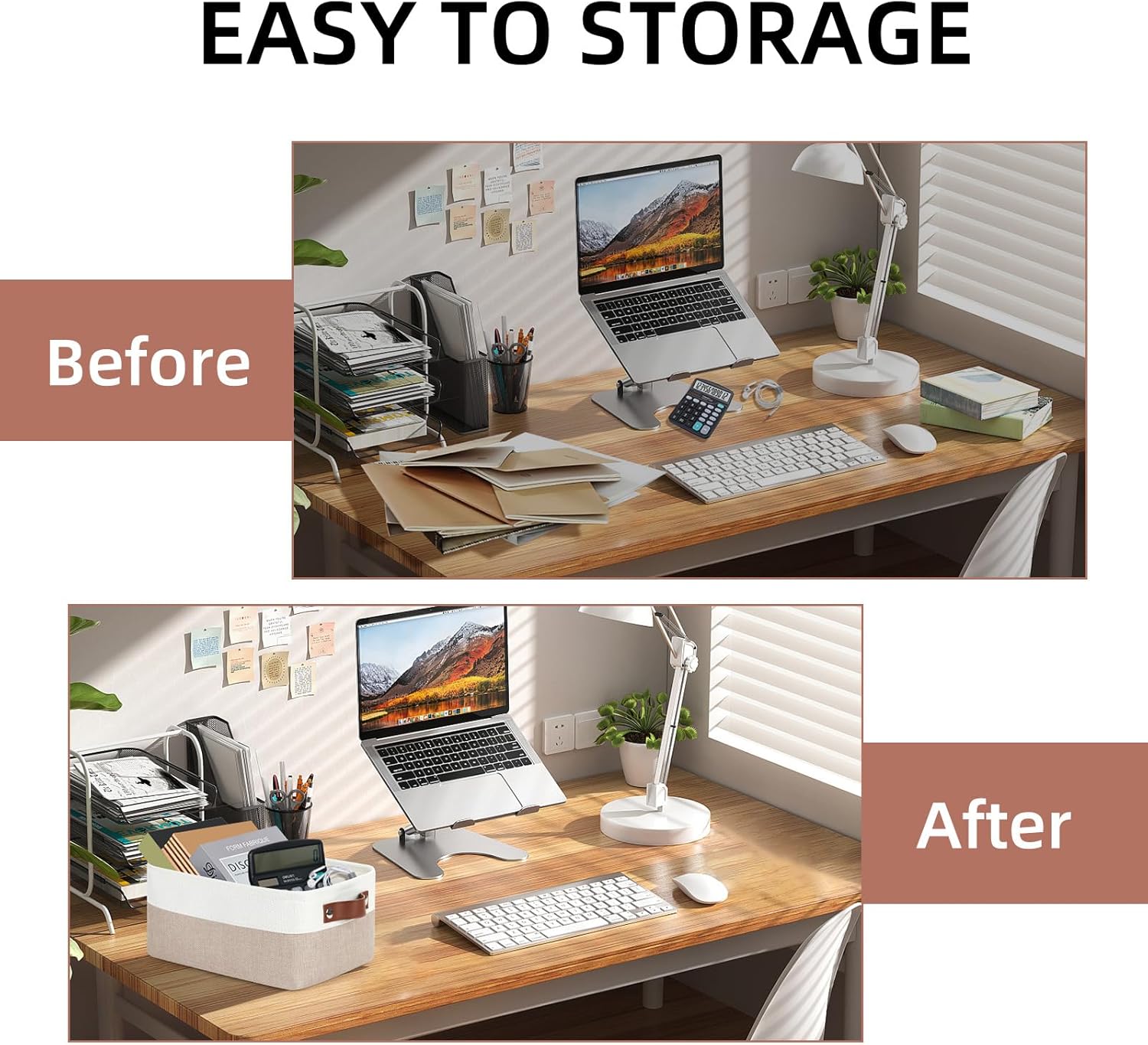 • Easy to Clean: The mini storage bins are easy to clean. You can dust the basket with a soft cloth and light soapy water when needed. It is not recommended to machine wash it as there is a metal frame support inside.