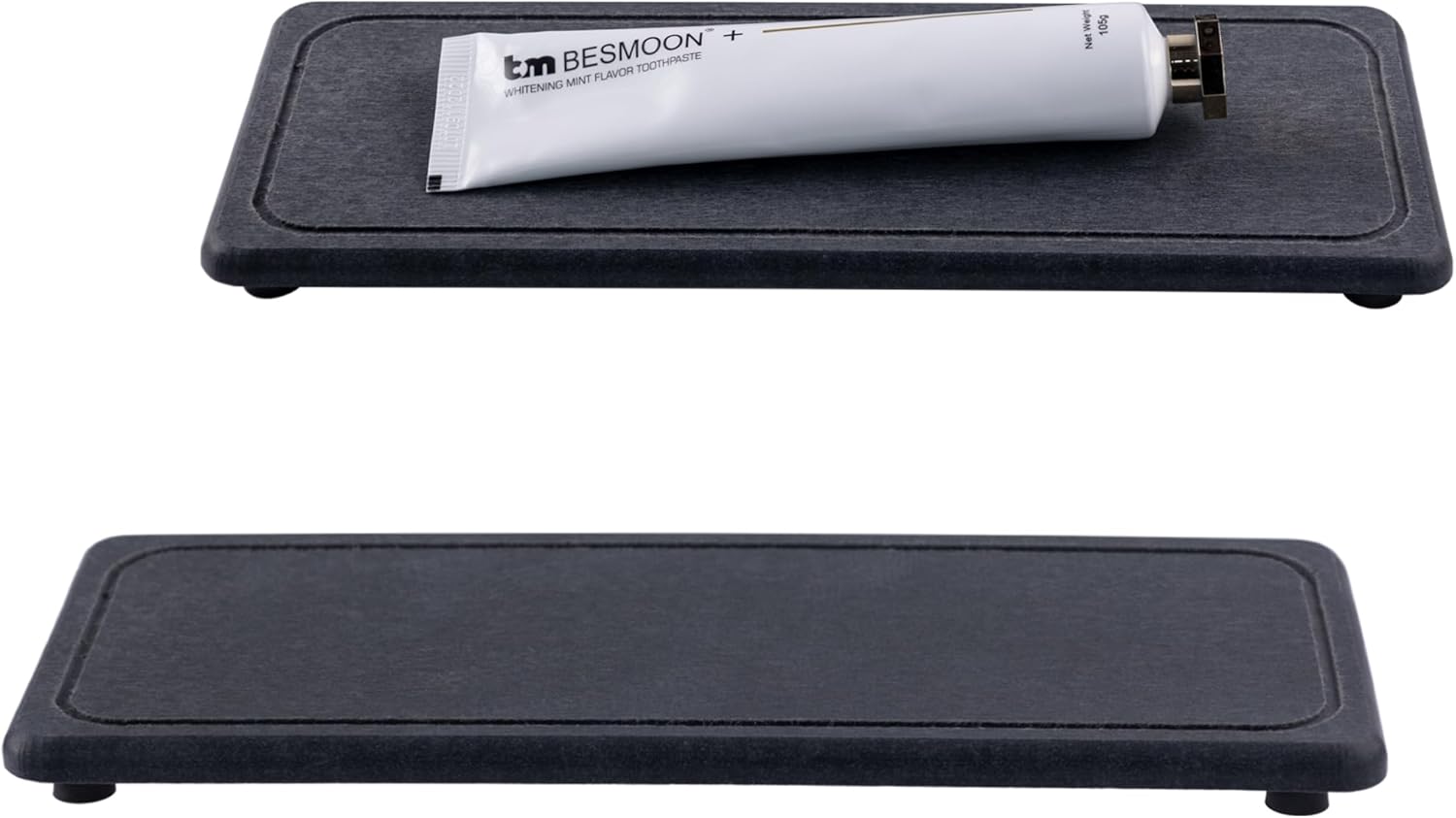 2 Pcs Water Absorbing Stone Trays, Kitchen/Bathroom Sink Soap Dish, Diatomite Tray Used for Hand Soap & Cosmetic Bottles in The Modern Home, 4" W x 10.2" L, Dark Gray