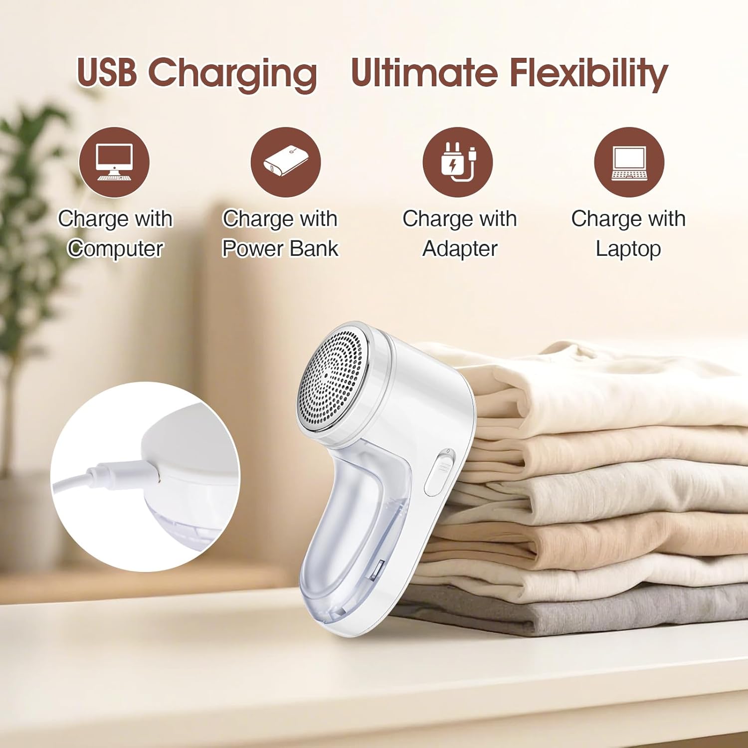 Electric Fabric Shaver, Lint Remover for Clothes, Rechargeable Sweater Shaver to Remove Fuzz and Pill for Sweater, Delicates, Bedding and Couch (White)