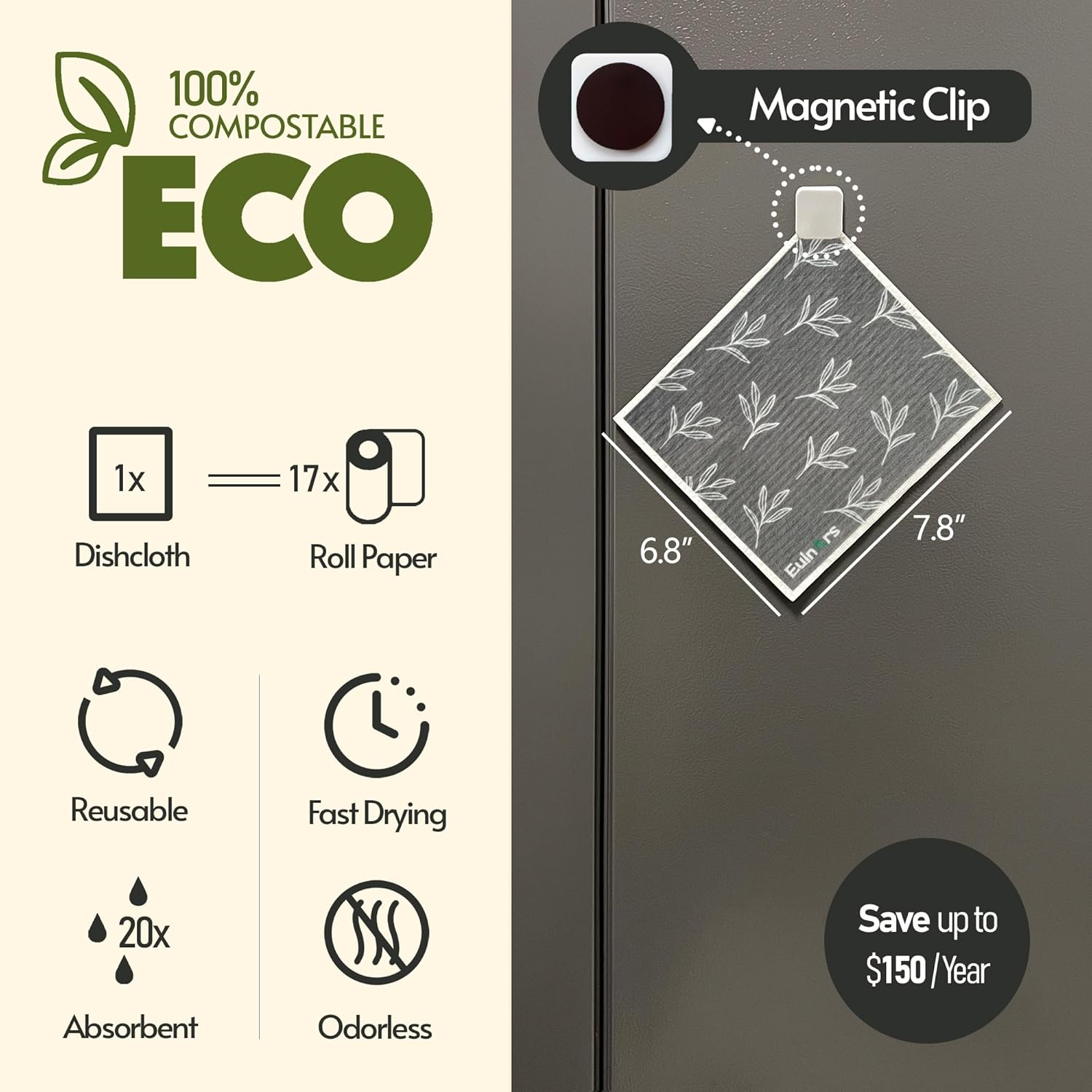 • Easy to Clean and Store: Our swedish dishcloths for kitchen, measuring 7.8 x 6.8 inches, each set comes with 8 cellulose dish cloths in 4 styles, along with 2 self-adhesive clips, 1 magnetic clip, and 9 labeling tags. Customize storage for easy access, hanging them on walls, counters, or refrigerators to keep your kitchen organized