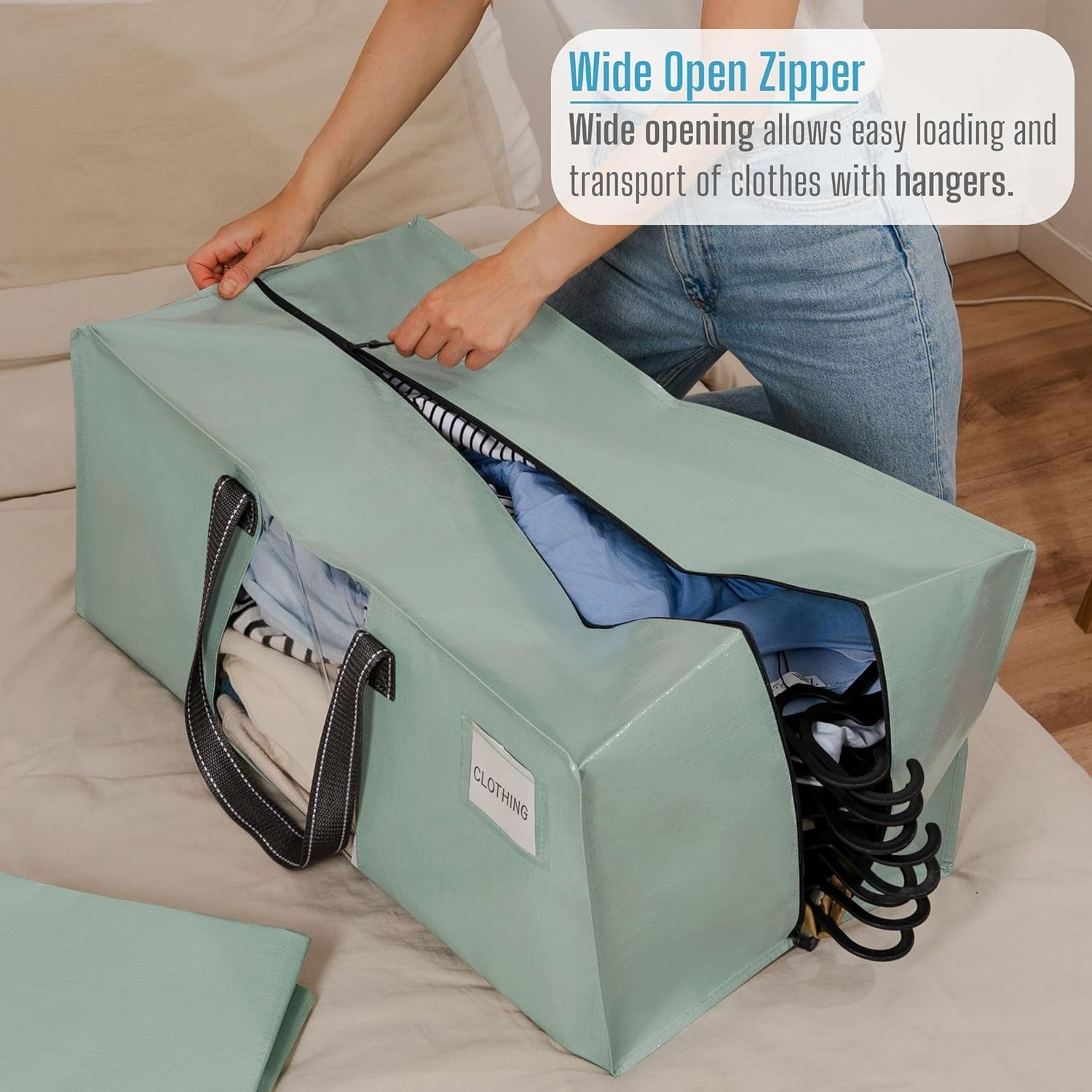 - Heavy-Duty and Durable- Crafted with durable and water-resistant PP-woven material, these heavy-duty bags are designed for longevity. Unlike traditional packing boxes for moving, these moving bags come with a set of convenient handles, making them easier to carry. Plus, they can hold up to 50 lbs, accommodating a substantial amount of your belongings. And when they get dirty? Simply wipe clean.