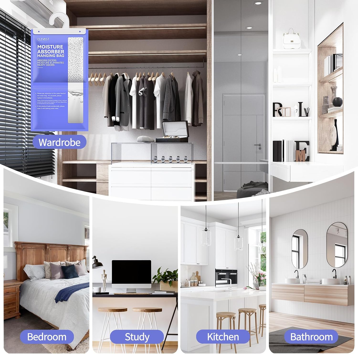 - EFFECTIVE DEHUMIDIFICATION: The CLEVAST dehumidifier bags feature spherical calcium chloride particles that can attract and absorb excess moisture quickly and efficiently. Moisture absorbers are designed with premium one-way moisture-permeable paper that will securely lock the moisture inside.