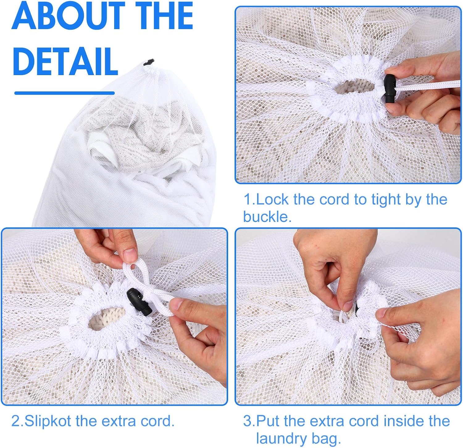 • Drawstring Locking Closure: the mesh bag has a locking buckle and drawstring buckle to prevent overflow; If you are using them as a laundry bag, tuck the buttons inside the bag to prevent the drawstring from loosening in the washing machine