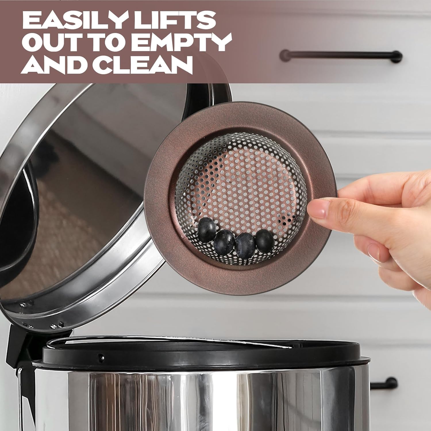 • Elegant Oil Rubbed Bronze: this kitchen sink strainer is designed in oil rubbed bronze style, which is eye catching and beautiful, easily matching with your kitchen and bathroom decoration, simple yet beautiful, adding a sense of exquisiteness to your house