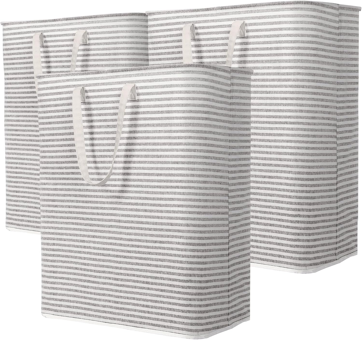 Lifewit 3 Pack Laundry Hamper Large Collapsible Laundry Baskets, Freestanding Waterproof Clothes Hamper with Easy Carry Handles in Laundry Room Bedroom Bathroom College Dorm for Adults, Gray, 3 x 125L