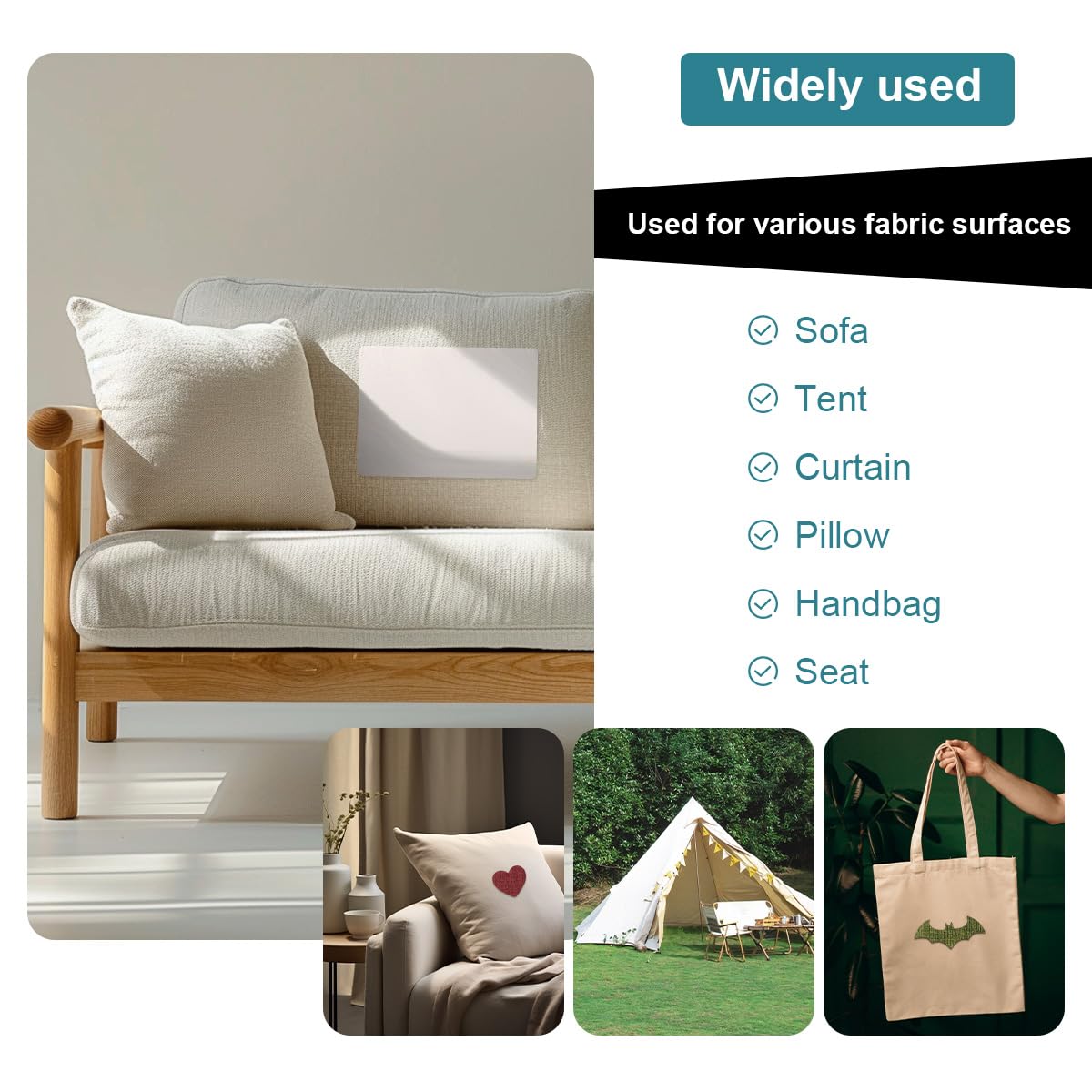 • EASY TO USE: Instructions are provided, simply peel off the linen adhesive patch backing paper and then apply the repair patch to holes, cracks and stains on linen sofas, car seats or other linen products. It only takes a few seconds to complete the repair work, and the glue reaches its best effect after 24 hours of resting!