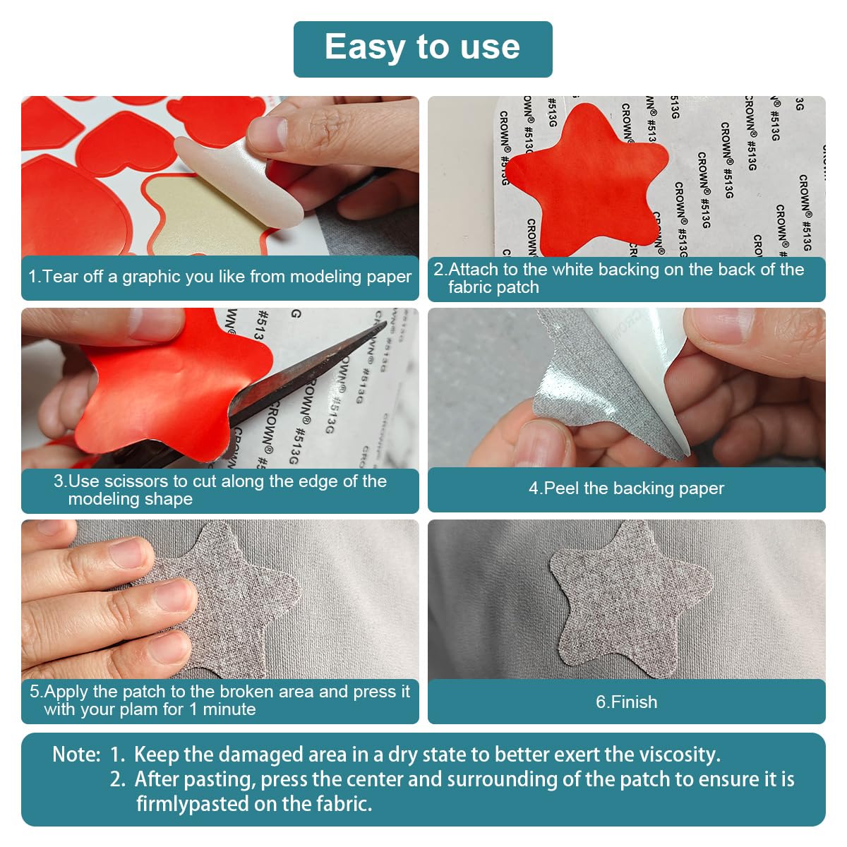 • EASY TO USE: Instructions are provided, simply peel off the linen adhesive patch backing paper and then apply the repair patch to holes, cracks and stains on linen sofas, car seats or other linen products. It only takes a few seconds to complete the repair work, and the glue reaches its best effect after 24 hours of resting!