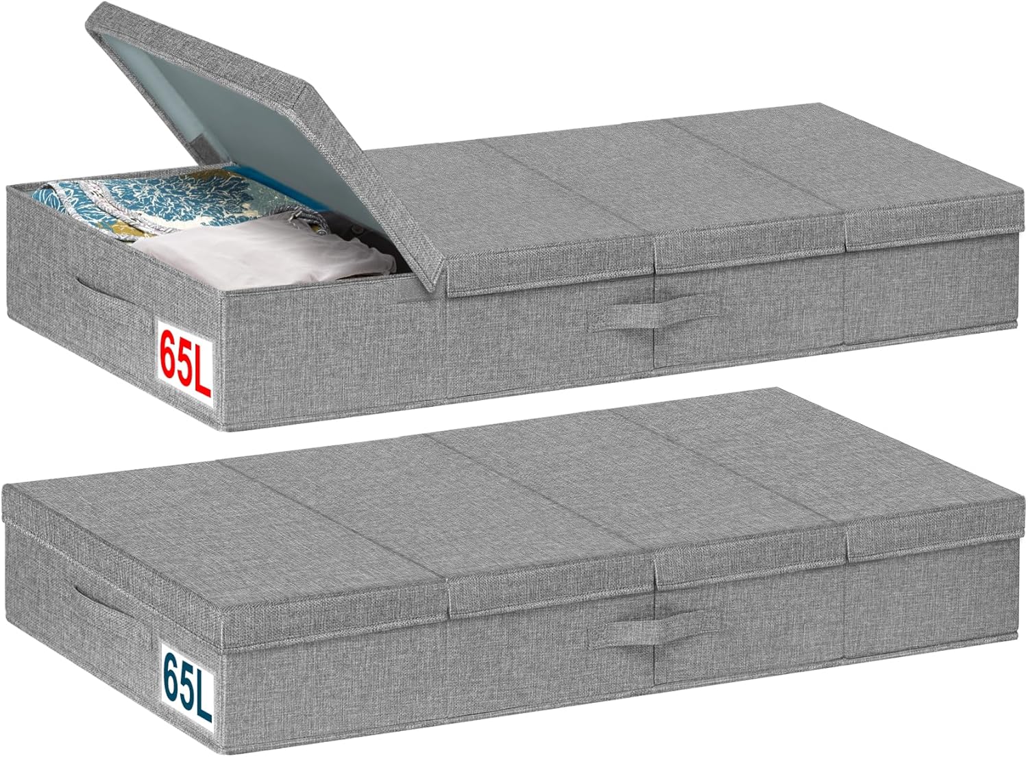 - STURDY STRUCTURE & STURDY HANDLES: Firm foldable bottom and sides, making the box more sturdy and stackable, keep it shape when empty; 3 Reinforced sewn-in handles make it easy maneuverability and convenient for you to carry and pull out from under the bed; handy bins make excellent blanket organizers and storage; Lasts longer than underbed storage containers plastic; Keep your bedroom neat and tidy with storage bins with lids that fit your room's existing decor and theme