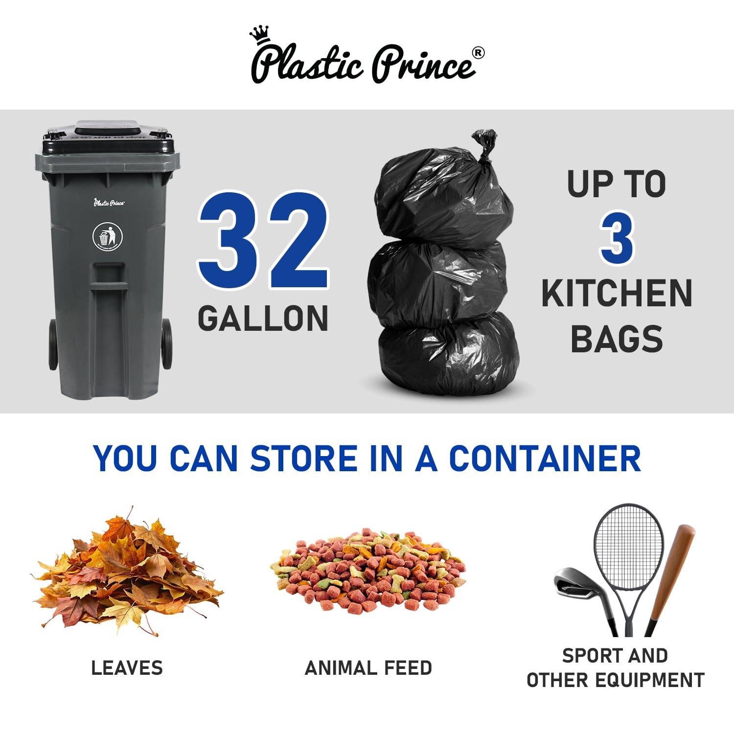 • Spacious Capacity: With a generous 32-gallon capacity, this outdoor garbage can with wheels provides ample room for storing waste, making it suitable for households, businesses, and outdoor events.