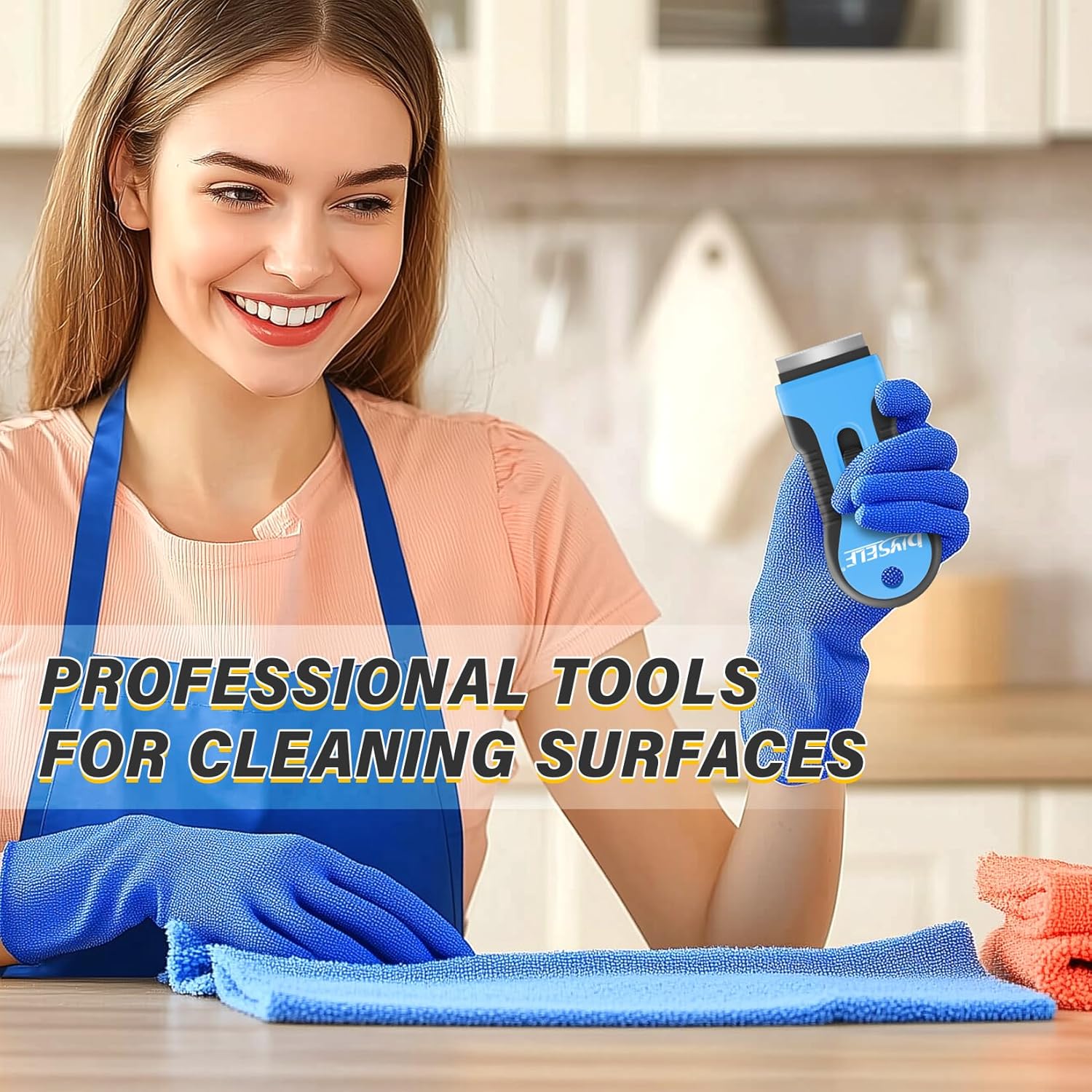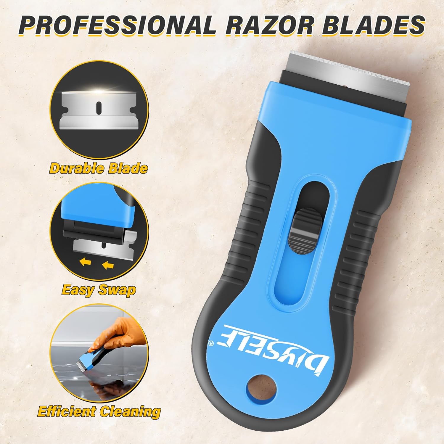 DIYSELF 2 Pack Razor Blade Scraper with 10 PCS Replacement Mental Blades, Heavy-Duty Razor Scraper, Professional-Grade Razor Blade Scraper Tool, Reliable Glass Scraper for Cooktop, Kitchen, Oven