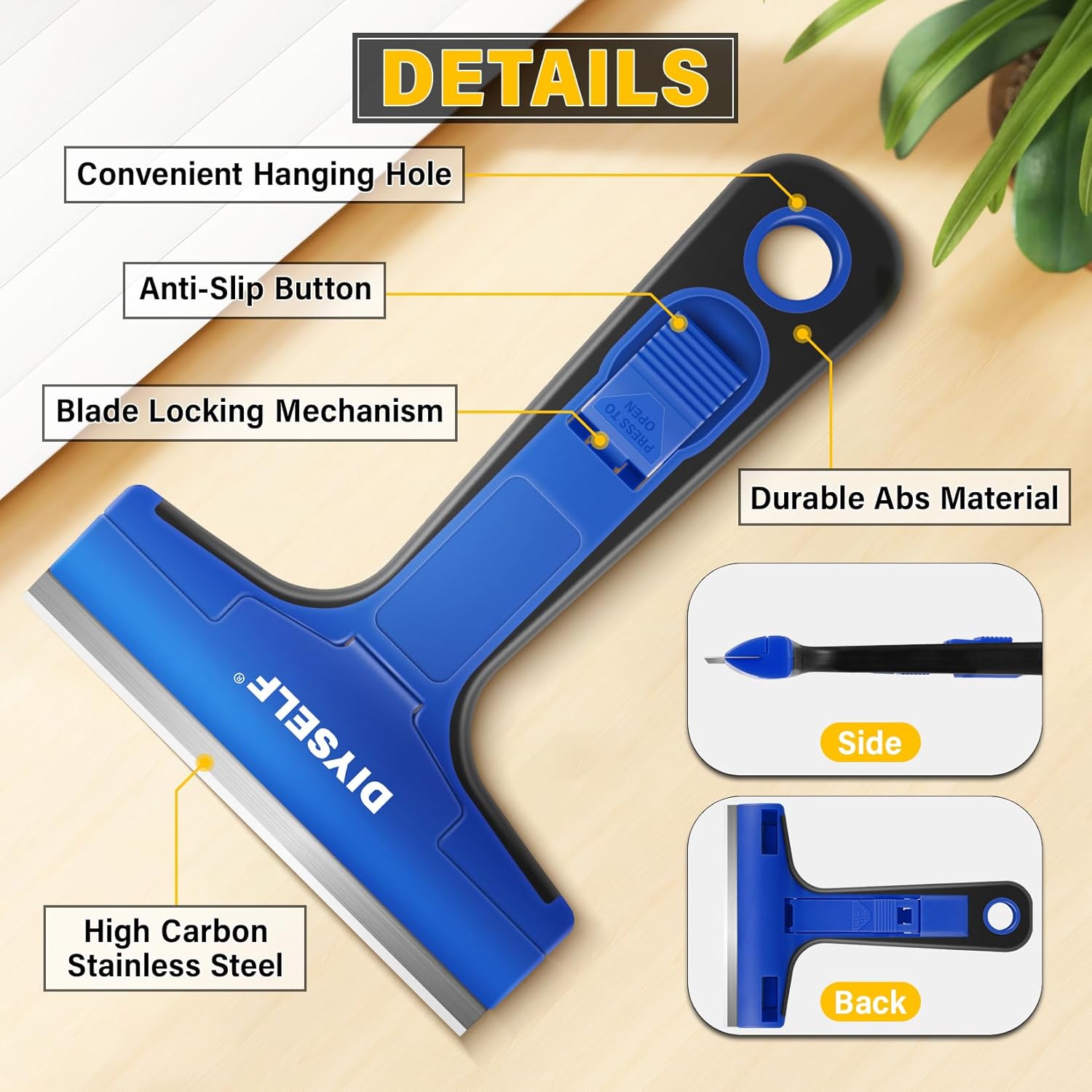 • Seamless Blade Replacements: Our cleaning scraper features a user-friendly locking and release mechanism, making blade replacements a cinch. Push the button to release the blade and effortlessly swap it out for a fresh one. Plus, you can store it safely in the provided box when not in use for added convenience.