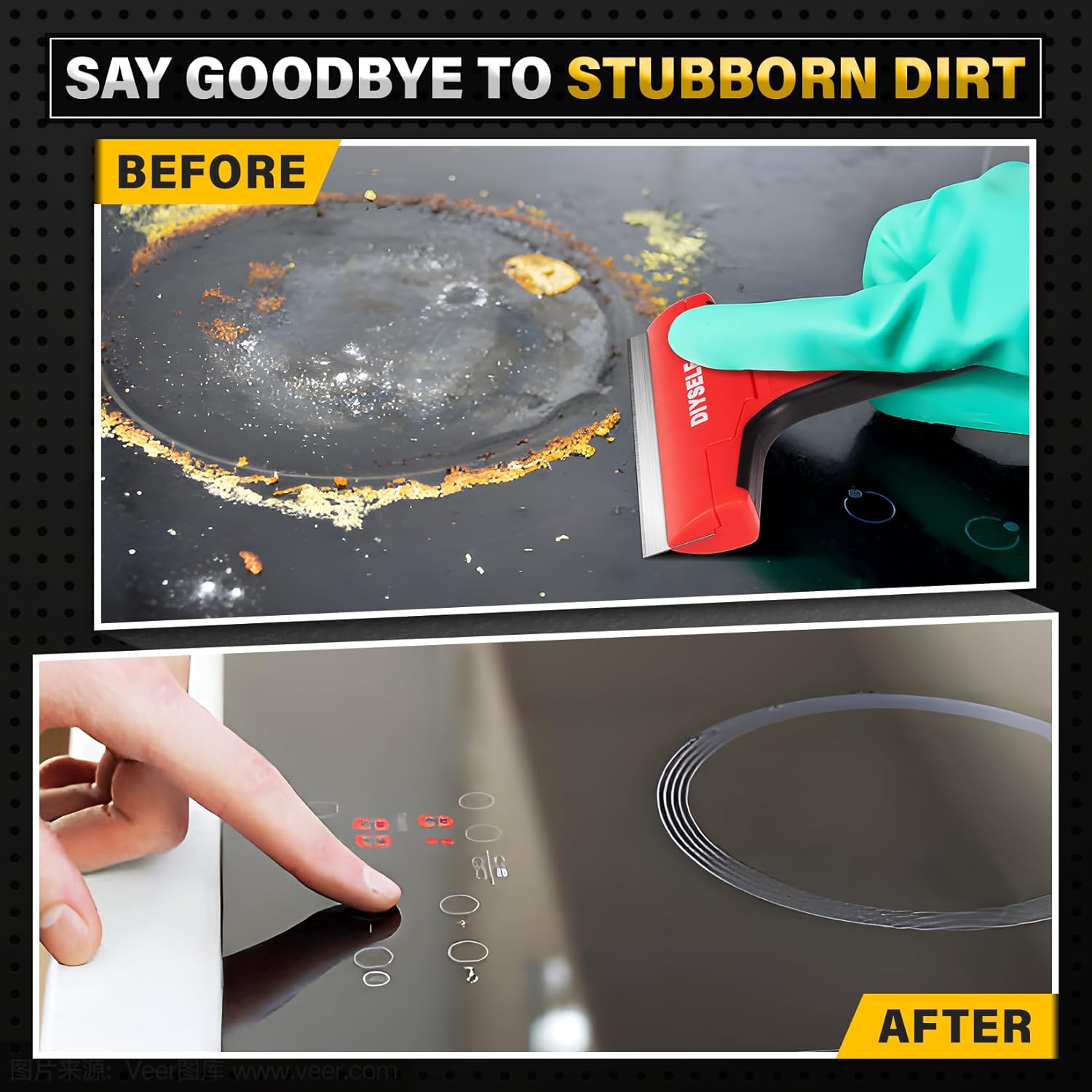 • Effortless Efficiency: Experience cleaning like never before with the ingenious design of our metal scraper. The 4-inch-wide razor blade ensures swift and thorough cleaning, covering larger areas in less time. Coupled with its ergonomic handle, cleaning becomes a breeze, saving you time and effort with every swipe.