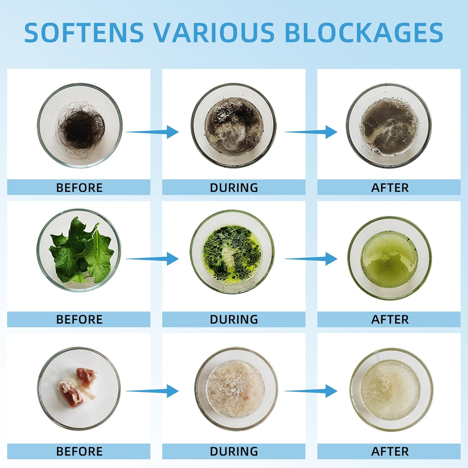 • Easy Unblocking: Our drain cleaner liquid easily and quickly turns clogs into a liquid that flows down the drain with the water, greatly saving you time in cleaning