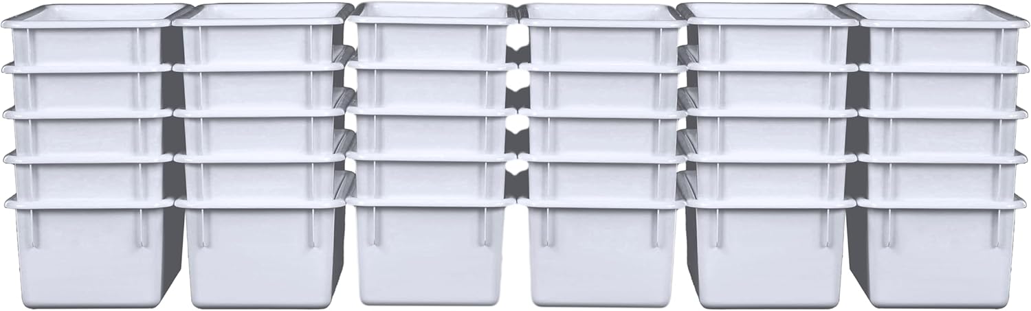 Wood Designs Cubby Storage Bin, Heavy Duty Plastic Containers for Kids White Cubby Tray Set of 30